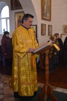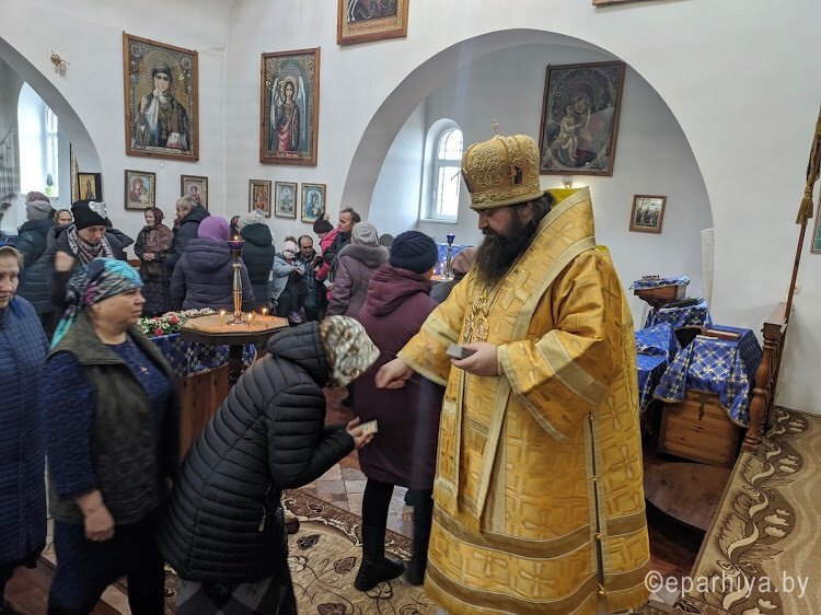Божественную литургию в Неделю мясопустную, о Страшном Суде 23 февраля 2020г. Преосвященнейший Амвросий, епископ Светлогорский, викарий Гомельской епархии совершил в храме Успения Пресвятой Богородицы д. Узнаж Светлогорского района. Преосвященнейшему сослужили: благочинный Светлогорского округа протоиерей Александр Кисель, настоятель храма протоиерей Павел Красиченко и духовенство епархии. По окончании богослужения владыка Амвросий поздравил причастников с принятием Святых Христовых Таин и обратился к молящимся со словами архипастырского назидания: «В этот день Святая Православная Церковь напоминает нам о Страшном Суде и, не случайно, для размышления предлагается Евангельское повествование о том, что всем нам предстоит Суд Божий, что, по слову Спасителя, даже за каждое праздное слово мы дадим ответ пред Богом, за все наши дела и поступки, за то, как мы исполняли важнейшие заповеди - любовь к Богу и к ближнему». Владыка призвал всех молиться, творить добрые дела, не унывать и всегда уповать на милость Божию. На память о совместной молитве Архипастырь раздал всем присутствующим иконки. Материал предоставлен Светлогорским благочинным округом |