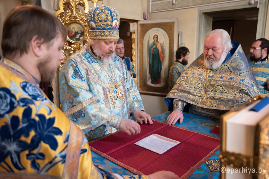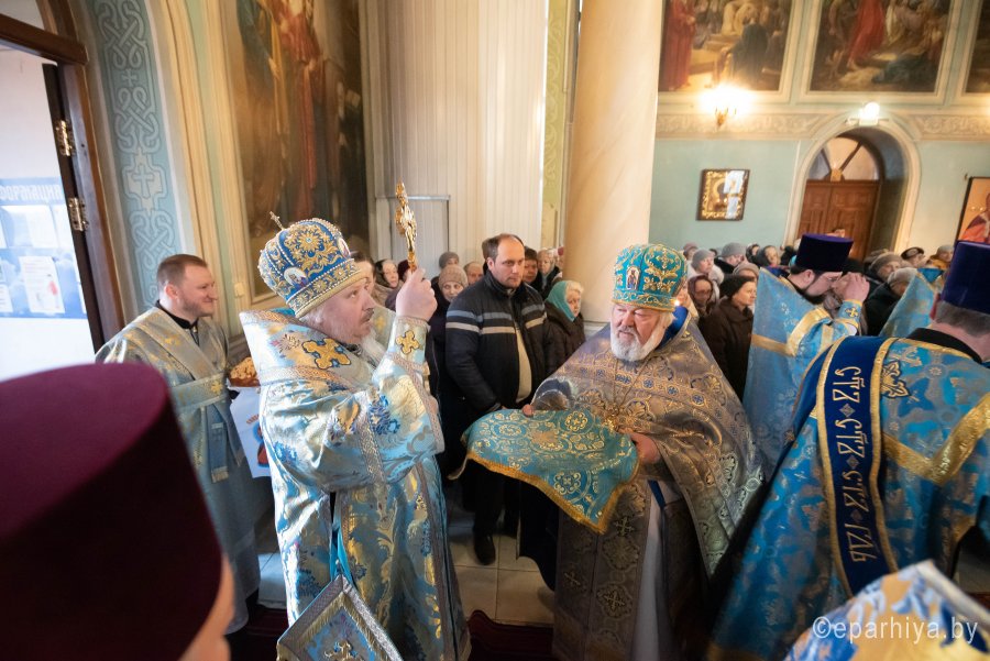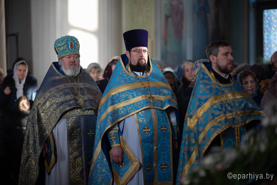 Божественную литургию в праздник иконы Божией Матери "Иверская" 25 февраля 2020г. Высокопреосвященный Стефан, архиепископ Гомельский и Жлобинский, совершил в одноименном храме г.Гомеля. Высокопреосвященному сослужили: секретарь Гомельской епархии протоиерей Георгий Алампиев, благочинный Гомельского городского округа протоиерей Игорь Ольшанов, благочинный Чечерского округа протоиерей Геннадий Хаткевич, настоятель прихода протоиерей Георгий Тур и духовенство епархии. По окончании богослужения Владыка поздравил духовенство и прихожан с престольным праздником, причастников с принятием Святых Христовых Таин и обратился к молящимся со словами архипастырского назидания. |