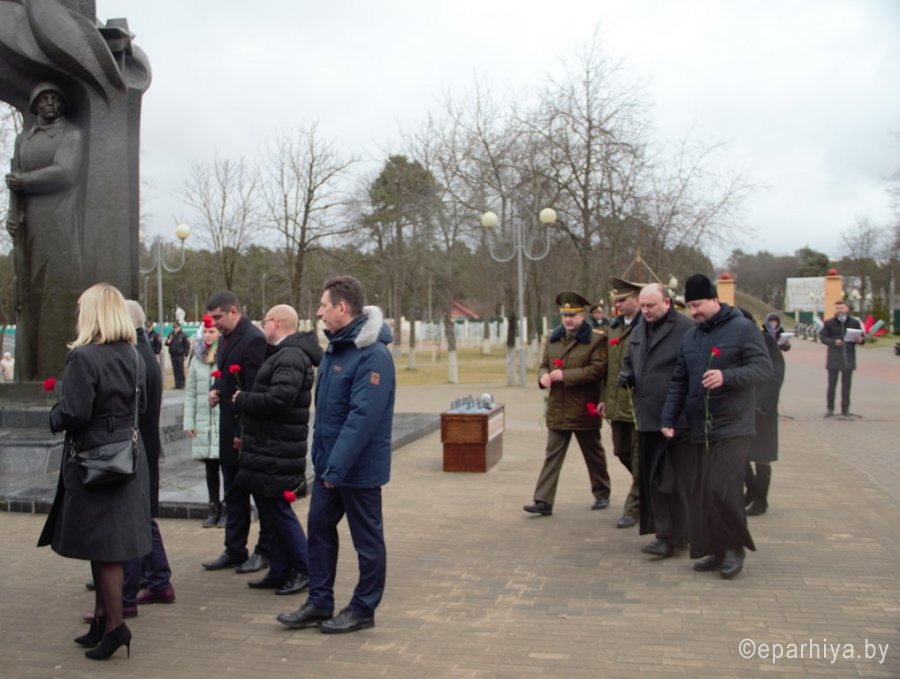 24 февраля протоиерей Александр Атрощенко, настоятель прихода храма Казанской иконы Божией Матери аг.Лучин, принял участие в торжественном шествии и митинге, посвященном 76-й годовщине освобождения Рогачева от немецко-фашистских захватчиков. У Мемориала воинской славы участники митинга стали свидетелями передачи рогачевской земли в общебелорусскую капсулу памяти. В рамках республиканского проекта «Во славу общей Победы!» капсулы с землёй, собранной с мест захоронений и сожжённых деревень из всех районов Беларуси, в день 75-летия Великой Победы, 9 мая 2020 года, будут помещены в ниши Храма-памятника в честь Всех Святых в г.Минске. Председатель Рогачёвского районного исполнительного комитета Виталий Александрович Сушко, ветеран ВОв, освободитель Рогачёва Николай Логвинович Щербаков и исполняющий обязанности первого секретаря райкома БРСМ Виктория Капаева пересыпали землю с мест 91 воинского захоронения и сожжённых деревень Рогачёвщины в общую чашу. Почтив память погибших освободителей Рогачёва минутой молчания, участники митинга возложили цветы к Мемориалу воинской славы. Материал предоставлен Рогачевским благочинным округом |