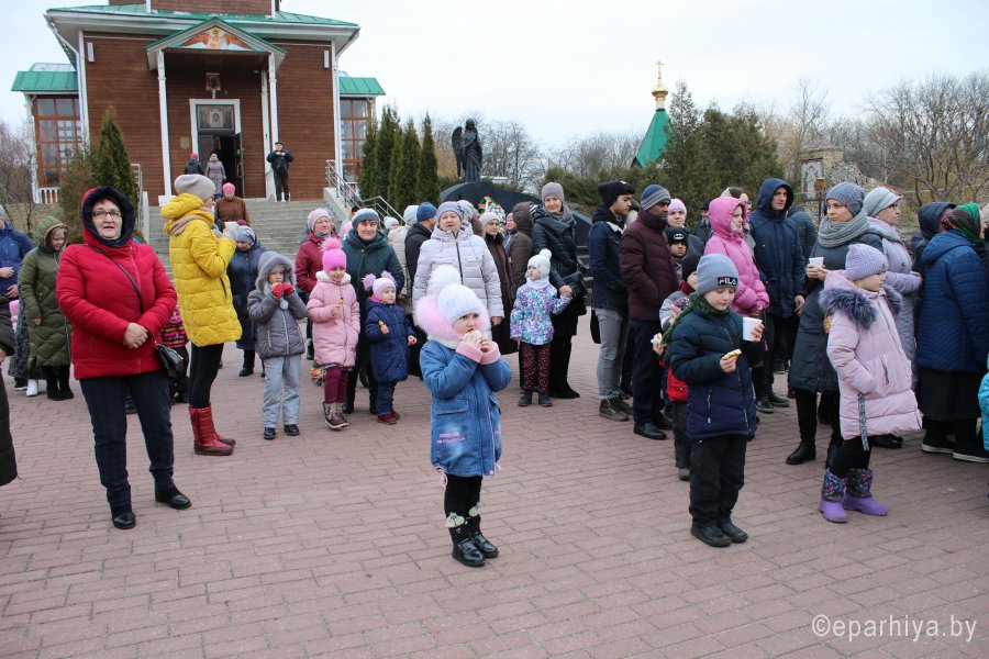 1 марта 2020г. церковь вспоминает Адамово изгнание из рая и празднует Прощеное воскресенье. В этот день просят прощения у близких, родственников, знакомых, друзей, коллег и сами прощают все обиды. В Великий пост верующие должны вступить с чистым сердцем, простив все обиды и получив прощение. После праздничного Богослужения на территории храма святого Архангела Михаила в г. Гомеле состоялось мероприятие, посвященное Прощенному Воскресенью. Клирик храма иерей Станислав Смоляк поздравил всех прихожан и гостей с праздником и пригласил к совместной трапезе, также был организован благотворительный концерт силами волонтерской группы храма и курсантов военно-транспортного факультета БелГУТа. Раздавали пышные оладьи с горячим чаем, не остались без внимания и маленькие гости храма, для них были подготовлены сладкие угощения. |
