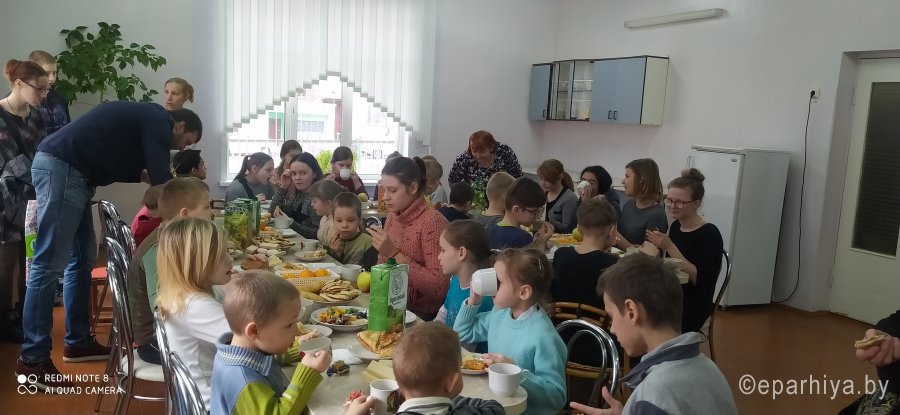 По сложившейся доброй традиции, 1 марта в Прощёное Воскресение, воспитанники Воскресной школы храма в честь иконы Божьей Матери «Скоропослушница» и их родители посетили Гомельский социально-педагогический центр для детей. Детям были вручены книги, пожертвованные прихожанами, организован сладкий стол с блинами. Ребята общались, вместе смотрели мультфильмы, беседовали с батюшкой. |