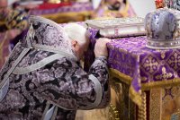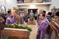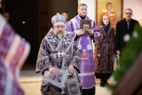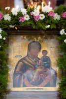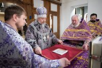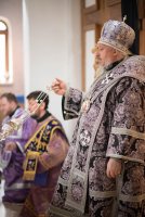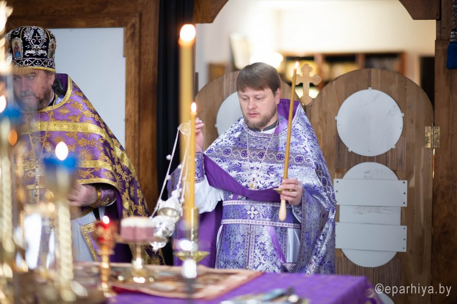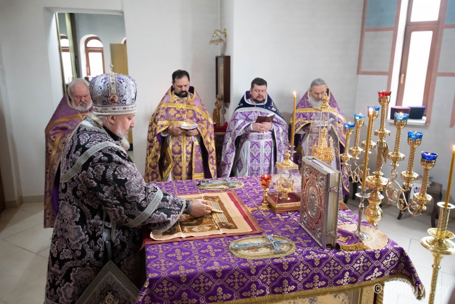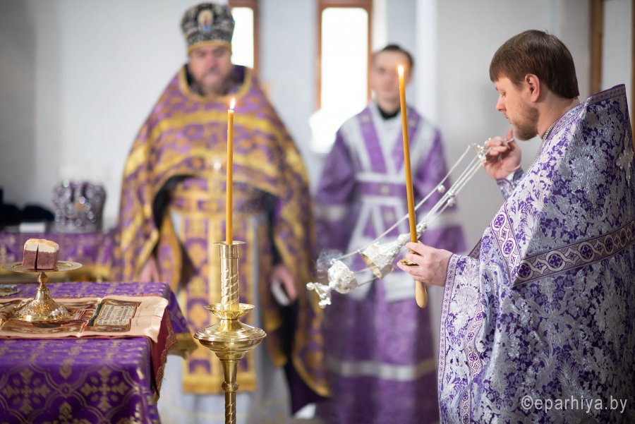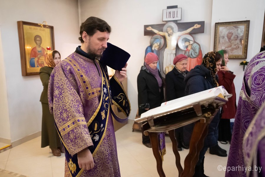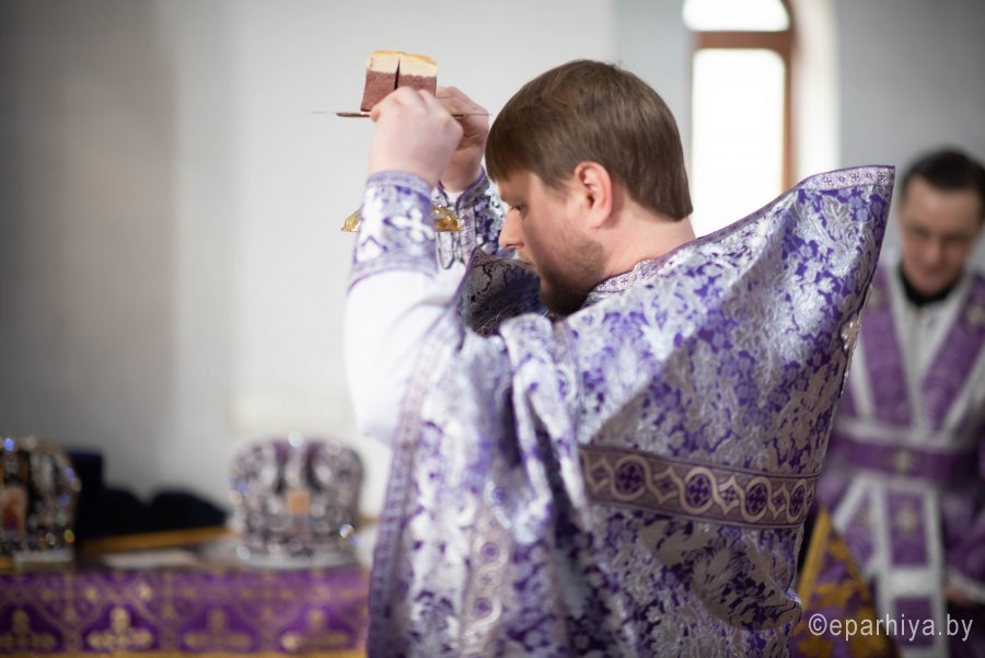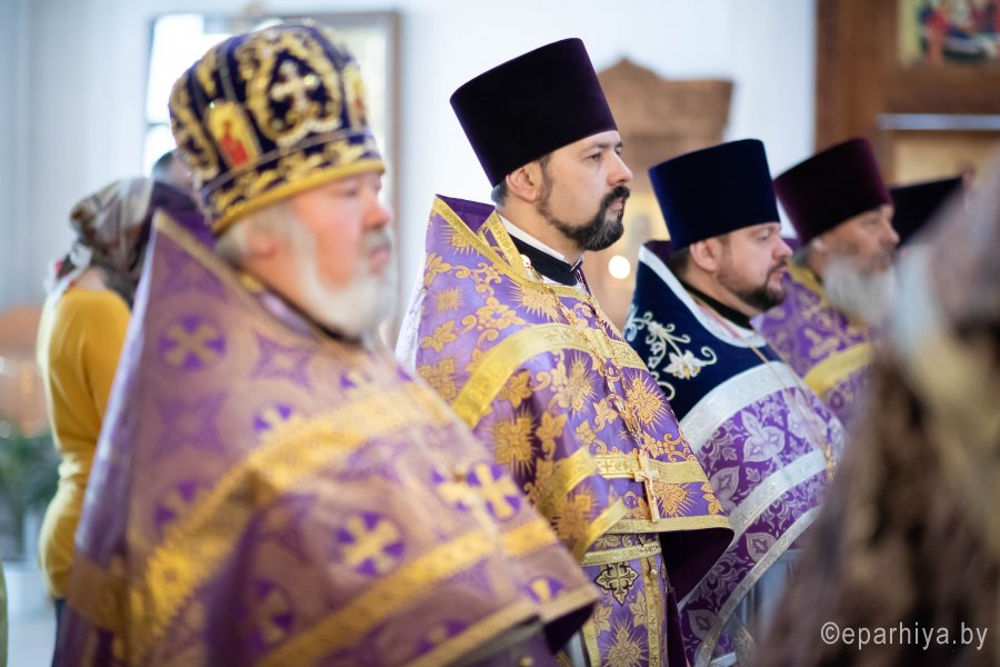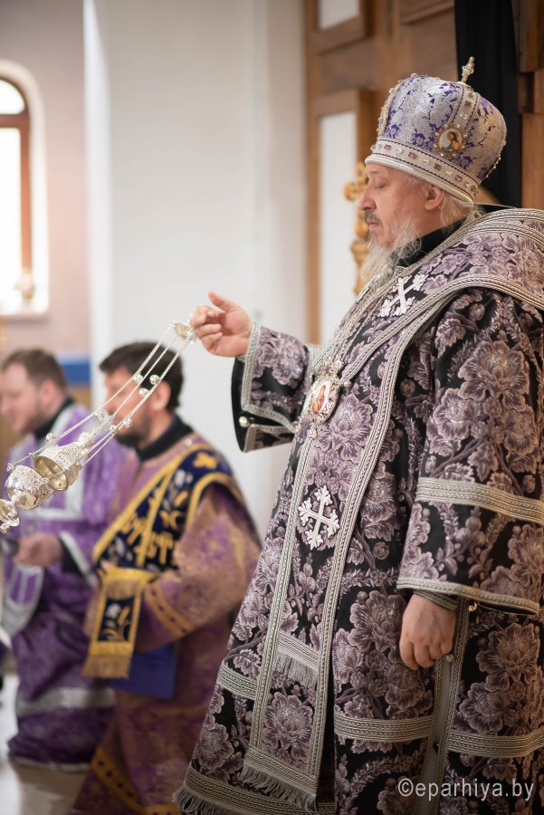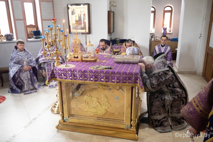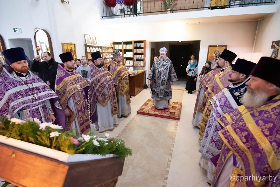В среду первой седмицы Великого поста, 4 марта 2020г., Высокопреосвященнейший Стефан, архиепископ Гомельский и Жлобинский совершил Божественную литургию Преждеосвященных Даров в храме Грузинской иконы Божией Матери г.Гомеля, где находится одноименный старинный образ Богородицы. Высокопреосвященнейшему сослужили: секретарь Гомельской епархии протоиерей Георгий Алампиев, председатель отдела архитектуры и строительства Гомельской епархии протоиерей Георгий Тур, председатель отдела социального служения Гомельской епархии протоиерей Владимир Силенко, благочинный Гомельского городского округа протоиерей Игорь Ольшанов, благочинный Гомельского районного округа протоиерей Артемий Кривицкий, председатель Информационного отдела Гомельской епархии протоиерей Олег Кострома, настоятель прихода протоиерей Владимир Масалитин и духовенство епархии. По окончании литургии Владыка обратился к прихожанам со словами архипастырского назидания, в словах проповеди архиепископ напомнил, что решением Епархиального Совета Гомельской епархии от 2019г. 4 марта в приходе установлен как день обретения иконы Божией Матери «Грузинская». Святой образ, написанный в 19 веке, ранее находился в одном из храмов г. Гомеля и был спасен от уничтожения после революции 1917г. Более 30 лет назад Воронин Николай Илларионович приобрел икону в деревне Поддобрянка Гомельского района и 4 марта 2019г. святой образ был торжественно передан в одноименный храм г.Гомеля, на свою историческую родину. |