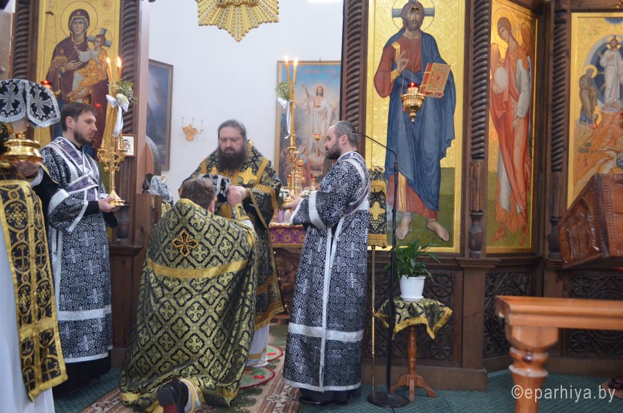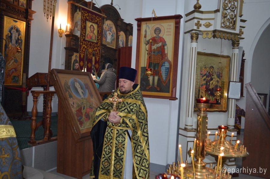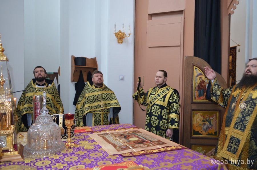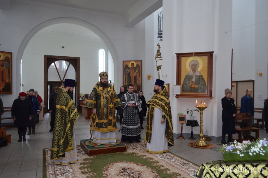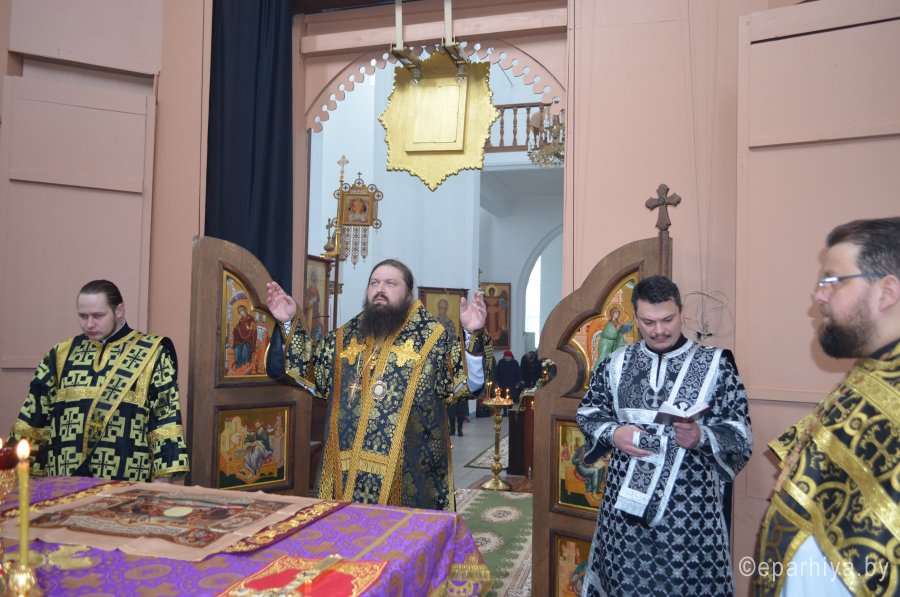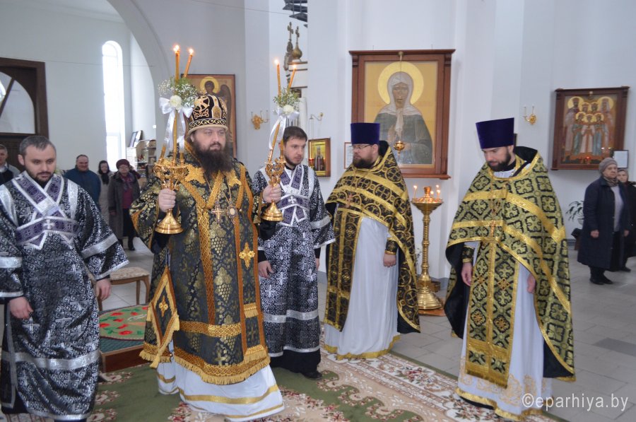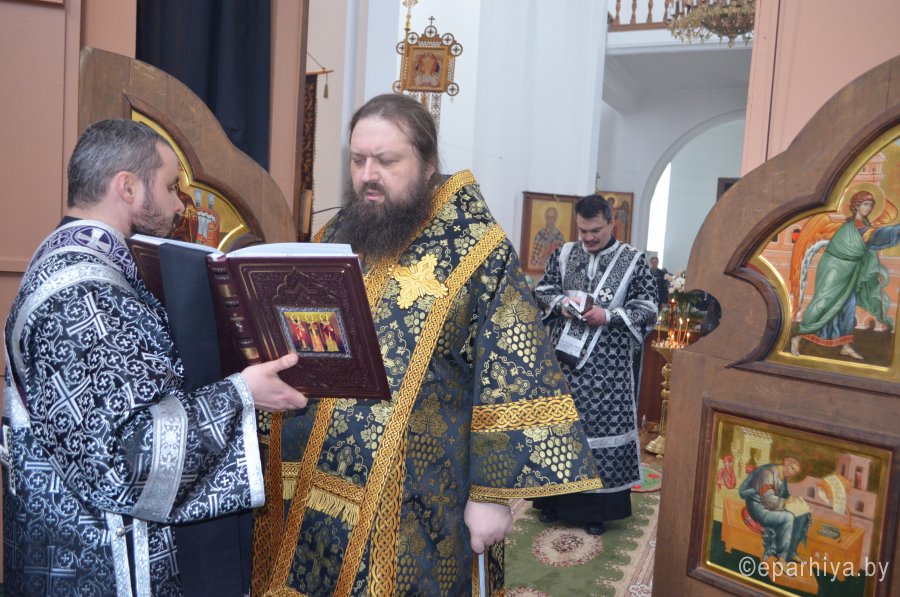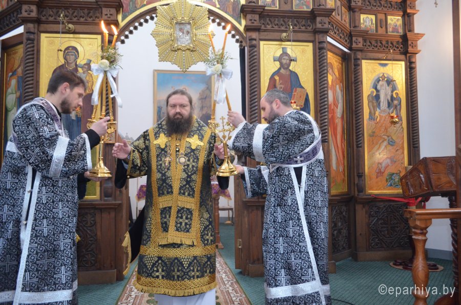 4 марта 2020г., в среду первой седмицы Великого поста, Преосвященнейший Амвросий, епископ Светлогорский, викарий Гомельской епархии возглавил Божественную литургию Преждеосвященных Даров в храме Преображения Господня в г. Светлогорске. Преосвященнейшему сослужили: благочинный Светлогорского округа, настоятель храма протоиерей Александр Кисель и духовенство епархии. По окончании богослужения Владыка обратился к прихожанам со словами архипастырского назидания. |