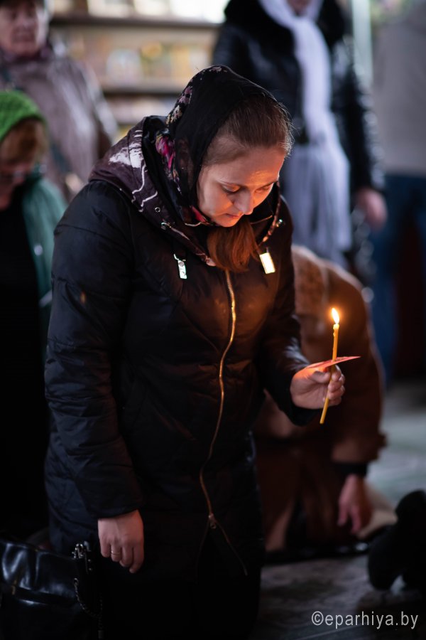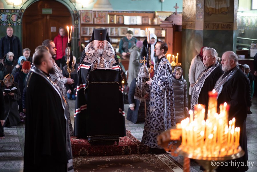 Великое повечерие с чтением покаянного канона преподобного Андрея Критского в четвертый день Великого поста 5 марта 2020г. Высокопреосвященнейший Стефан совершил в кафедральном соборе Живоначальной Троицы г.Жлобина Высокопреосвященнейшему сослужили: секретарь Гомельской епархии протоиерей Георгий Алампиев, благочинный Жлобинского округа протоиерей Василий Пилипенко и духовенство округа. По окончании богослужения Владыка обратился к молящимся со словами Архипастырского назидания. |