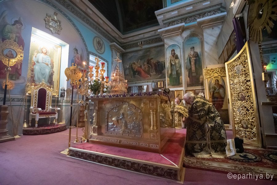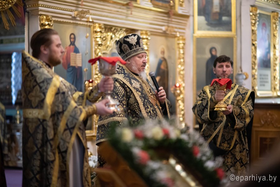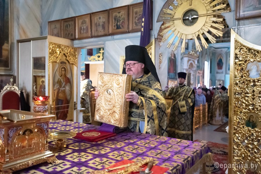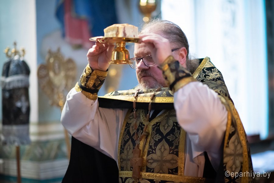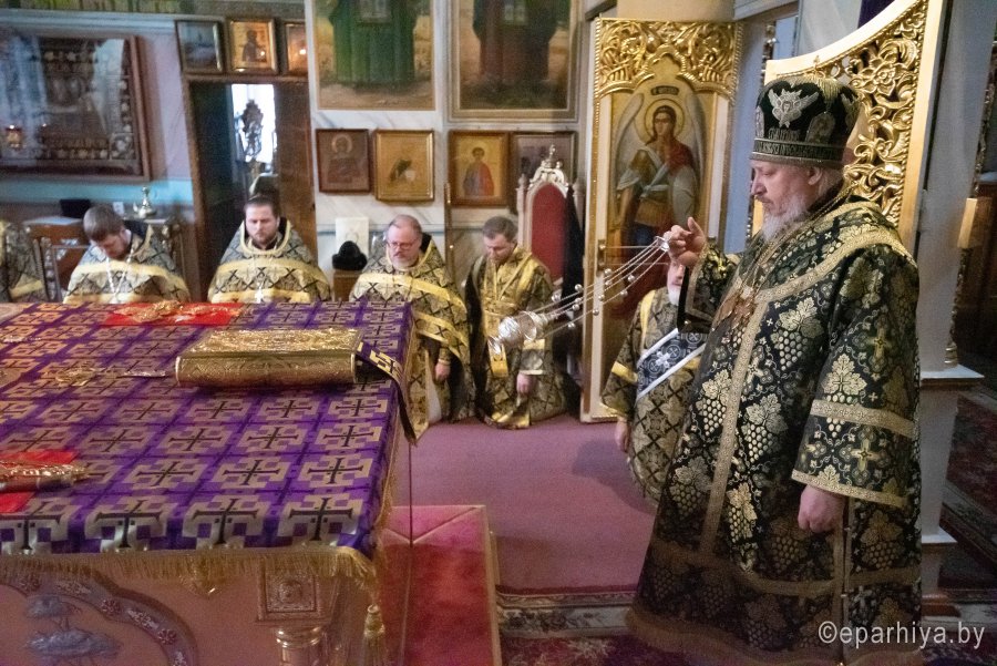 Божественную литургию Преждеосвященных Даров в пятницу первой седмицы Великого Поста 6 марта 2020г. Высокопреосвященнейший Стефан, архиепископ Гомельский и Жлобинский, совершил в Петро-Павловском кафедральном соборе г.Гомеля. Владыке сослужило духовенство собора. По заамвонной молитве Владыка совершил освящение колива. По окончании богослужения Высокопреосвященный Стефан поздравил причастников с принятием Святых Христовых Таин и обратился к молящимся со словами Архипастырского назидания. |