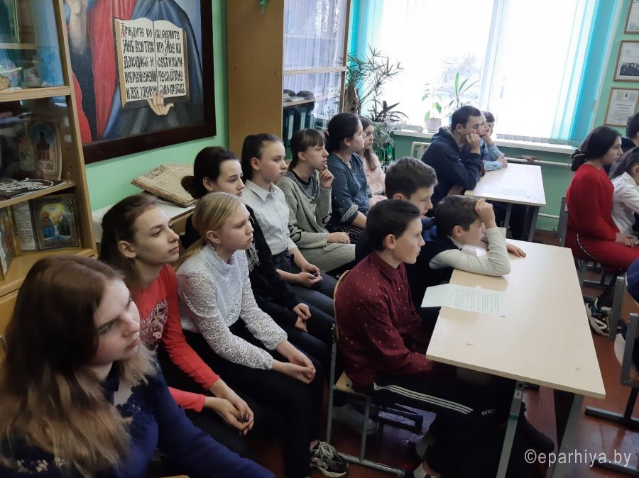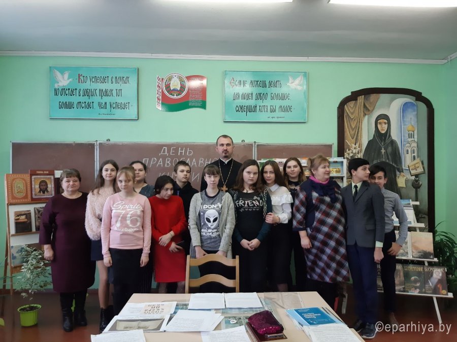 6 марта в рамках празднования Дня православной книги в ГУО «Паричская средняя школа» состоялась встреча настоятеля прихода храма Святой мироносицы равноапостольной Марии Магдалины г.п. Паричи иерея Николая Бондарева с учащимися 6-8 классов. Священник познакомил ребят с богослужебными книгами Православной Церкви, а затем рассказал школьникам о Нагорной проповеди Господа нашего Иисуса Христа, которая начинается девятью Заповедями Блаженства, объяснил их смысл и значение в жизни верующего человека. В ходе мероприятия ребята вместе со священником размышляли над тем, что такое «благость», «дух», «кротость», «правда», «мир», «чистота сердца». В завершение встречи священнослужитель пожелал ребятам и педагогам крепкого здоровья, терпения, Божией помощи во всех добрых делах. 8 марта, в преддверии Дня православной книги, в старшем классе воскресной школы прихода храма Преображения Господня в г. Светлогорске состоялся турнир-соревнование «По страницам Ветхого и Нового Завета», который провела педагог воскресной школы Зимакова Алла Григорьевна. Состязание состояло из нескольких конкурсов: представления названий команд, афоризмов, интеллектуального соревнования на знание православных праздников. В ходе турнира ребята показали отличные знания по основам православной культуры, давали развернутые ответы, демонстрировали творческие способности. Для военнослужащих 4-ой патрульной роты в/ч 5525 г. Светлогорска в храме Преображения Господня в г. Светлогорске 9 марта 2020г. состоялась экскурсия-беседа, посвященная Дню православной книги, которую провел благочинный Светлогорского округа протоиерей Александр Кисель. Священник рассказал бойцам о значении Библии в жизни православного человека, особое внимание уделил важности ежедневного чтения Евангелия, как книги, в которой человек находит истину, обогащает и питает свой ум. Солдаты узнали о святых Православной Церкви, о подвиге в христианском понимании, о преображении души человека и о том, как вера в Бога помогает в наши дни. В завершение встречи священнослужитель благословил молодых солдат на продолжение воинской службы, пожелал им скорейшего возвращения домой к родным и близким и выразил надежду, что эта встреча в храме оставит добрый след в их сердцах. Накануне Дня православной книги, 9 марта 2020г. в ГУО «Чирковичская средняя школа им. П. Стефановского» состоялся «Час откровенного разговора» для старшеклассников, куда был приглашен настоятель прихода храма святых двенадцати апостолов аг. Чирковичи архимандрит Алексий (Желенок). Разные аспекты проблемы наркомании раскрыли учащимся директор школы Людмила Анатольевна Моисеева, директор музея Наталья Григорьевна Гавриленко, заведующая Чирковичским ФАПом Елена Николаевна Зеленюк. Настоятель прихода храма в честь святых двенадцати апостолов аг. Чирковичи архимандрит Алексий (Желенок) осветил тему с духовной точки зрения, отметил то, что человек рожден свободным и всегда имеет выбор, употреблять наркотики или нет. Священнослужитель рассказал ребятам о Священном Писании и его роли в нашей жизни, обратил внимание на то, что главное в Православной книге - это любовь и доброделание. По окончании встречи священник пожелал школьникам помощи Божией в учении и пожелал здоровья, терпения и достижения своих целей. В рамках празднования 
