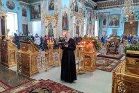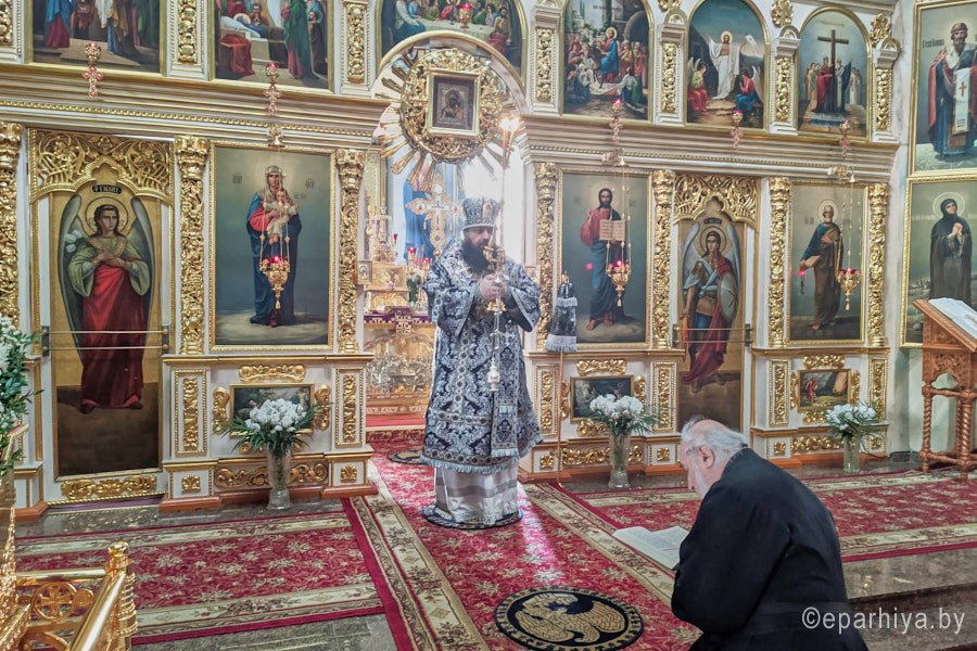 11 марта, в среду 2-й седмицы Великого поста, епископ Светлогорский Амвросий, викарий Гомельской епархии, совершил Божественную литургию Преждеосвященных Даров в кафедральном соборе святых апостолов Петра и Павла. Владыке сослужило духовенство собора. Пресс-служба Никольского монастыря |