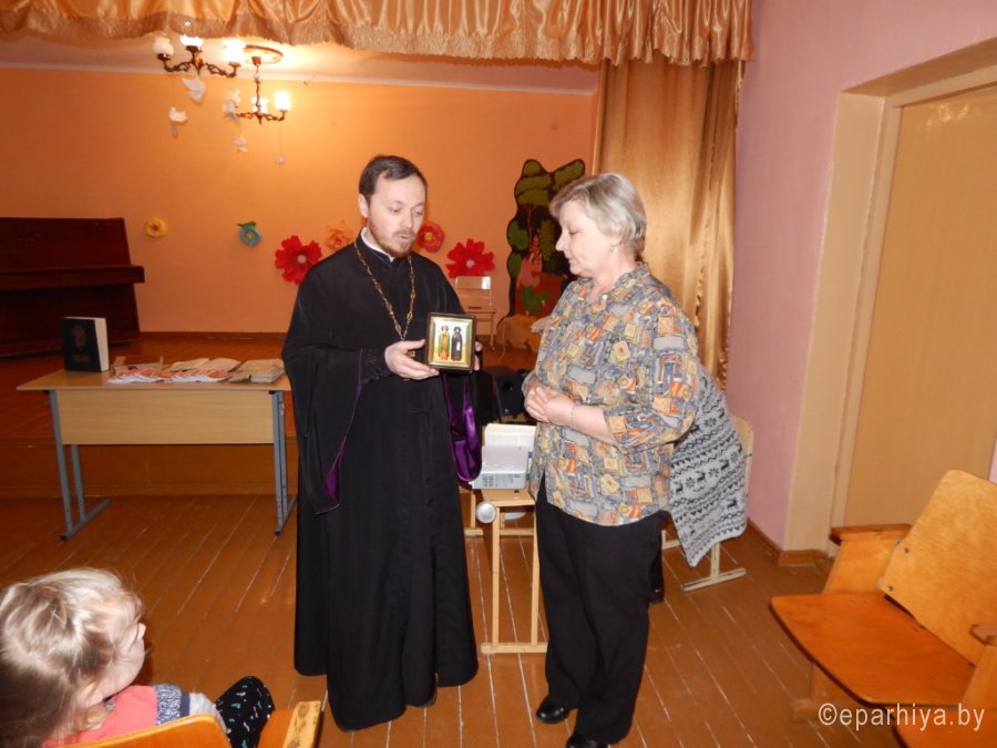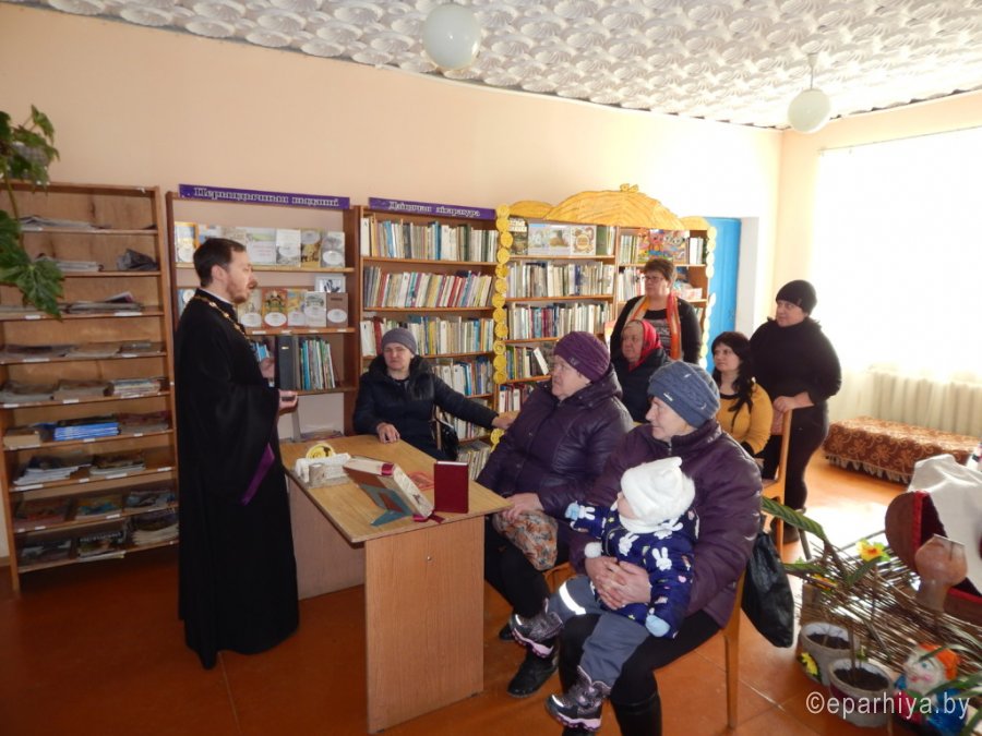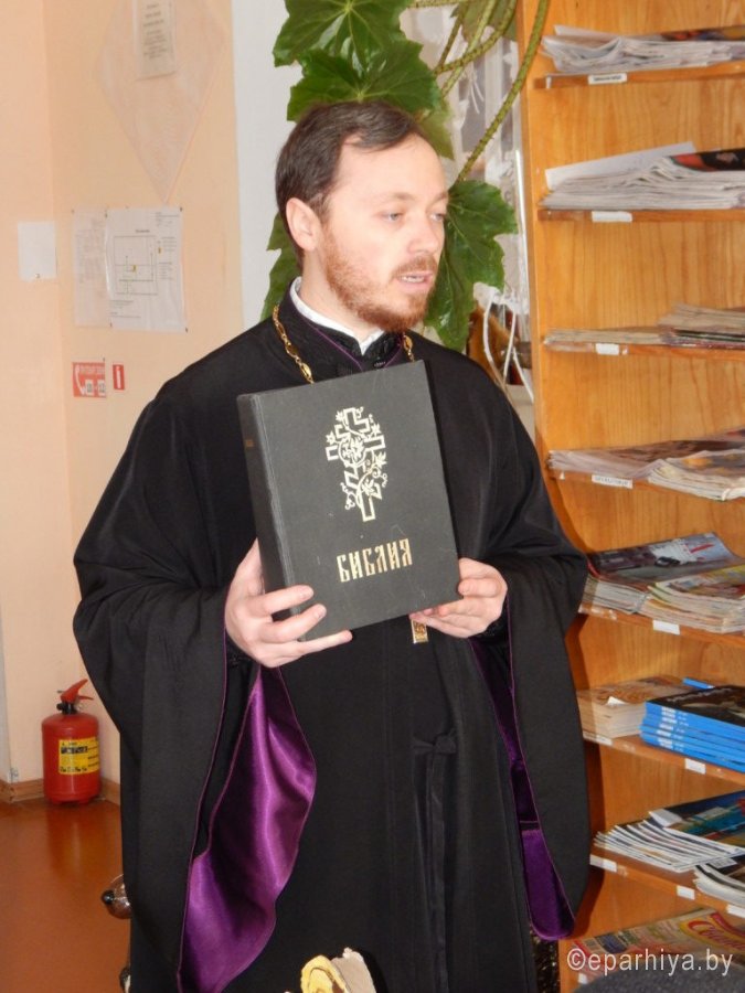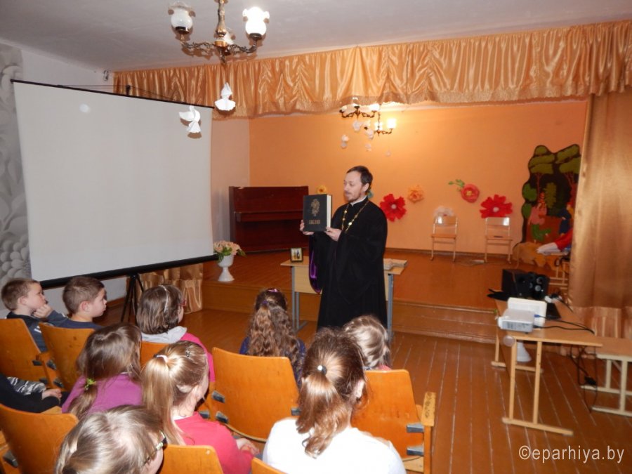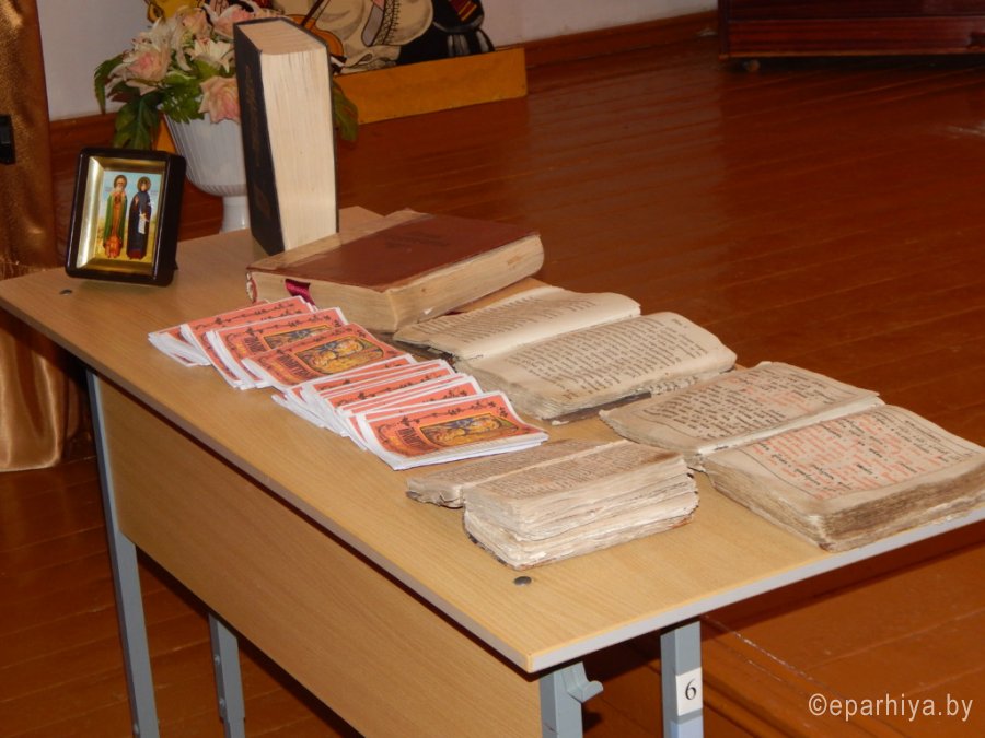В Рогачёвском благочинии началась Неделя православной книги. Открытие выставки духовной литературы «Живое слово мудрости духовной», на которой представлена старопечатная и современная церковная литература из библиотеки храма святителя Николая Чудотворца г.п. Корма и музея ГУО «Дубовицкий детский сад-базовая школа», состоялось в ГУК «Кормянская центральная районная библиотека». Открыл выставку настоятель прихода храма святителя Николая Чудотворца иерей Георгий Орловский, а первыми посетителями стали участники вокального ансамбля ветеранов педагогического труда «Криницы» и работники Кормянской центральной районной библиотеки.Священник рассказал о самой главной Книге – Библии и о церковных богослужебных книгах, развитии книгопечатания и значении книги в жизни человека. В Дубовицкой сельской библиотеке Кормянского района прошла беседа с читателями «Есть чудо на свете с названием дивным — КНИГА!» Иерей Георгий Орловский рассказал о Библии, более подробно остановившись на Евангелиях и Псалтири. В конце встречи иерей Георгий Орловский передал в дар библиотеке иллюстрированный молитвослов для детей, а всем присутствующим подарил иконки Святой Блаженной Матроны Московской. Затем священник встретился с учащимися ГУО «Дубовицкий детский сад-базовая школа». Во время часа православной культуры «Рядом с небесами» дети узнали о святых земли Белорусской: преподобной Евфросинии Полоцкой, блаженной Валентине Минской, праведном Иоанне Кормянском и преподобной Манефе Гомельской. Беседа прошла живо и интересно, в рассказе священник использовал поучительные истории, интересные факты. В таком формате школьники смогли прикоснуться к зернам истины, основам христианских заповедей, узнали, зачем нужен православному человеку пост. Вместе посмотрели и обсудили фильм о святом праведном Иоанне Кормянском. В заключение встречи батюшка ответил на вопросы слушателей, подарил всем ребятам детские молитвословы и благословил на отличное завершение учебной четверти. Для школы священник передал икону святого праведного Иоанна Кормянского и святой преподобной Манефы Гомельской, а присутствующим учителям и работникам школы подарил иконки святой блаженной Матроны Московской. 9 марта в воскресной школе прихода храма Казанской иконы Божией Матери аг.Лучин царила особенно оживлённая атмосфера: ребята активно участвовали в познавательной игровой программе «Мудрых 33 подружки», посвящённой Дню православной книги. Под руководством педагога Стасевич Татьяны Ивановны дети узнали об истории книгопечатания и о людях, которые много потрудились, чтобы добрые книжки стали доступными для нас. Игры с буквами и словами, загадки сделали программу яркой и запоминающейся. В третьем классе государственного учреждения образования «Кошарский ясли-сад — начальная школа» прошёл урок православной культуры на тему «Святое Евангелие - Благая весть». Протоиерей Владимир Янчесов, настоятель прихода храма Святого Духа аг.Дворец, рассказал ребятам о жизни и духовных трудах евангелистов Матфея, Луки, Марка и Иоанна и подарил школьникам Евангелия для детей. 10 марта иерей Игорь Ковальчук, настоятель прихода храма Успения Пресвятой Богородицы аг.Городец, встретился с учащимися 7 класса Городецкой средней школы. В беседе «Книга в жизни человека» священн
