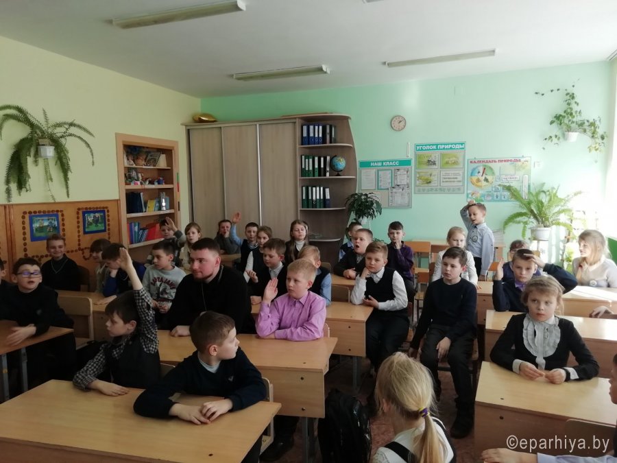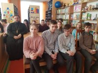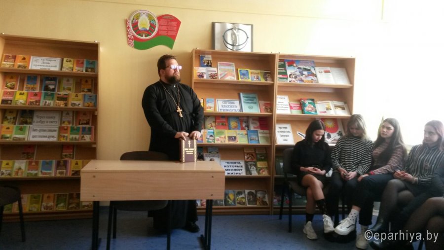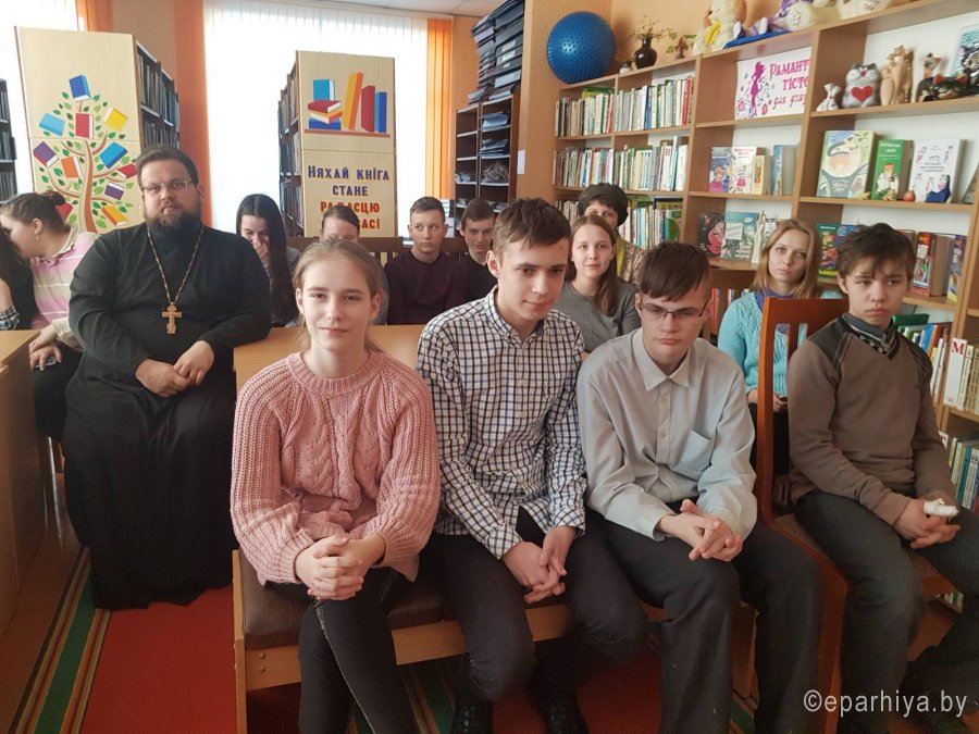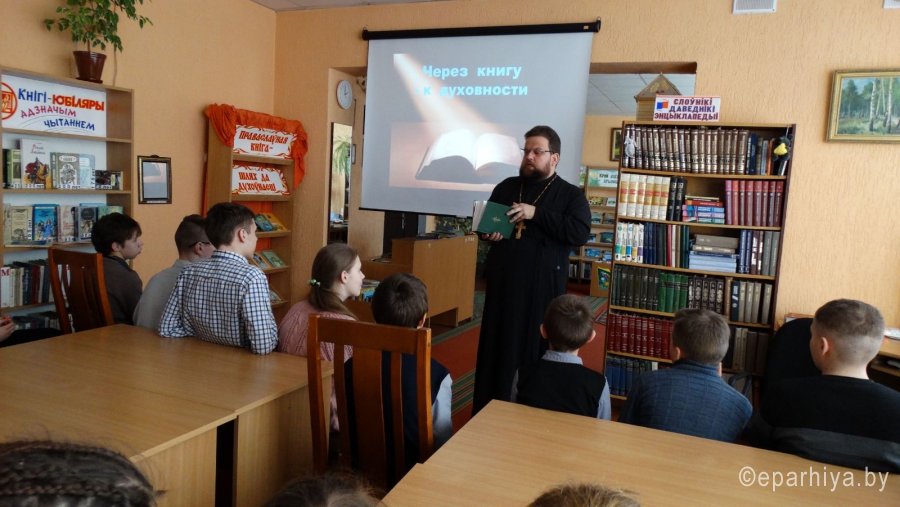 В преддверии Дня православной книги 12 марта в Светлогорской детской библиотеке состоялась беседа настоятеля прихода храма Успения Пресвятой Богородицы д. Узнаж протоиерея Павла Красиченко с постоянными слушателями воскресной школы для взрослых. Священник познакомил присутствующих с разнообразными переводческими традициями Нового Завета в современном мире, рассказал о проблемах перевода Нового Завета на русский язык, определил современное значение Послания святого апостола Павла для церковной жизни. Священнослужитель также рассказал слушателям о книжной традиции Древней Руси, о значении великопостной богослужебной литературы и в завершение встречи пожелал всем присутствующим милости Божией и крепкого здоровья. 12 марта в ГУО «Средняя школа № 4 г. Светлогорска» состоялся информационный час в 3 классе «Живое слово мудрости духовной», посвящённый Дню православной книги. Приглашённый на урок клирик прихода храма святителя Кирилла Туровского в г. Светлогорске иерей Алексей Капошко рассказал интересную информацию об истории праздника, познакомил с притчами и жизненными историями о добре, честности, милосердии, любви к людям, обратил особое внимание на важность такого предмета передачи информации, как книга, и напомнил о её ценности и необходимости бережного отношения к ней. 12 марта настоятель прихода храма Святых двенадцати апостолов аг. Чирковичи архимандрит Алексий (Желенок) провел тематическую встречу «Православная книга в жизни человека» с учащимися старших классов ГУО «Чирковичская средняя школа им. П. Стефановского». Священник рассказал школьникам об истории возникновения письменности, обратил внимание на то, что она была необходима, в первую очередь, для сохранения знаний, переданных людям Богом. Священнослужитель представил вниманию ребят книги из личной библиотеки – «Апостол» XIX века издания, «Молитвослов», «Требник», а также книги современных изданий. Учащиеся смогли подержать в руках старинные фолианты в кожаных переплетах, увидеть преимущество печатных изданий над современными гаджетами. В завершение встречи школьники подарили настоятелю панно, сделанное своими руками. 13 марта в сельской библиотеке аг. Дуброва Светлогорского района состоялся библиографический обзор тематической книжной выставки «Праваслаўная кнiга – шлях да духоўнасцi». На встречу были приглашены настоятель прихода храма святого равноапостольного Николая архиепископа Японского аг. Дуброва иерей Евгений Новик и учащиеся ГУО «Дубровский ясли-сад-средняя школа». Библиотекарь Бусел Людмила Федоровна обратила внимание ребят на серию книг, изданных Белорусской Православной Церковью, — «Детям о вере», «Детям о добре», «Детям о маме», «Детям о папе», «Детям о бабушке», «Детям о дедушке», в которых собраны тематически подобранные сказки, были, истории для детей. Авторы этих книг – писатели классической и современной литературы. По окончании мероприятия священник поздравил присутствующих ребят и взрослых с Днем православной книги, рассказал школьникам о смысле пятой заповеди Божией – послушании родителям и наставникам, напомнил об уважительном отношении к старшему поколению, о том, что необходимо во всем помогать своим близким в житейских делах, а также о роли книги в современное время. В рамках празднования Дня православн