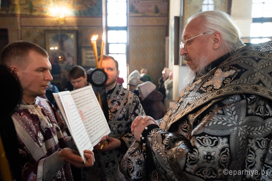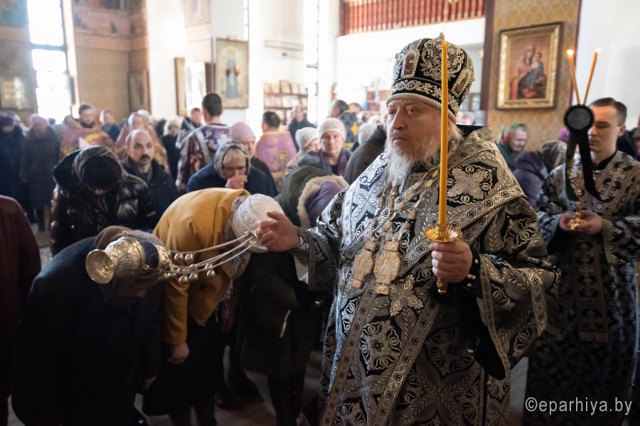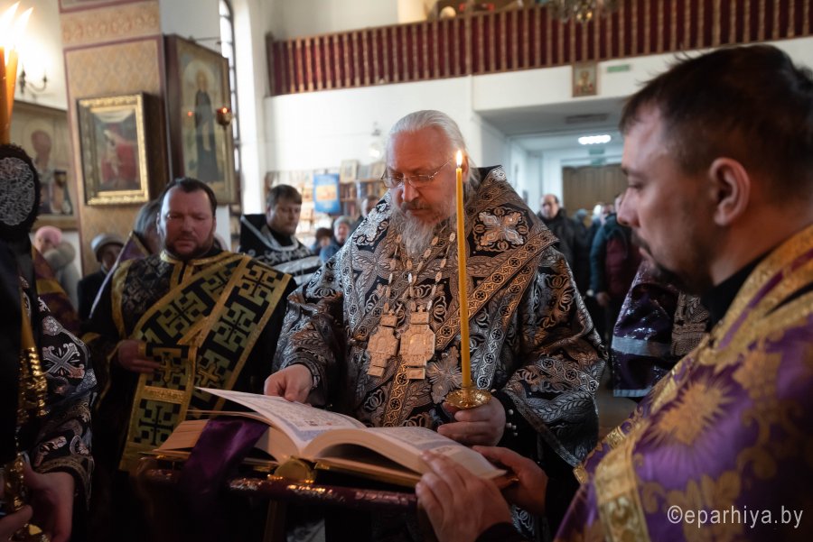 Вечером 15 марта 2020г., Высокопреосвященнейший Стефан, архиепископ Гомельский и Жлобинский совершил Пассию в приходе храма св.блг.кн. Александра Невского в г.Гомеле. Высокопреосвященнейшему сослужили: секретарь Гомельской епархии протоиерей Георгий Алампиев, настоятель прихода протоиерей Владимир Силенко и духовенство епархии. По окончании богослужения Владыка обратился к молящимся со словом назидания, пожелав всем помощи Божией и преподал верующим Архипастырское благословение. Пассия (лат. страдание) — особое богослужебное последование, совершаемое в Великий пост, на котором читаются тексты Евангелия, повествующие о страданиях Христа. Эта служба была составлена в середине XVII века святителем Петром (Могилой). |