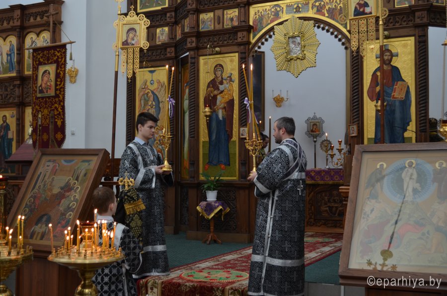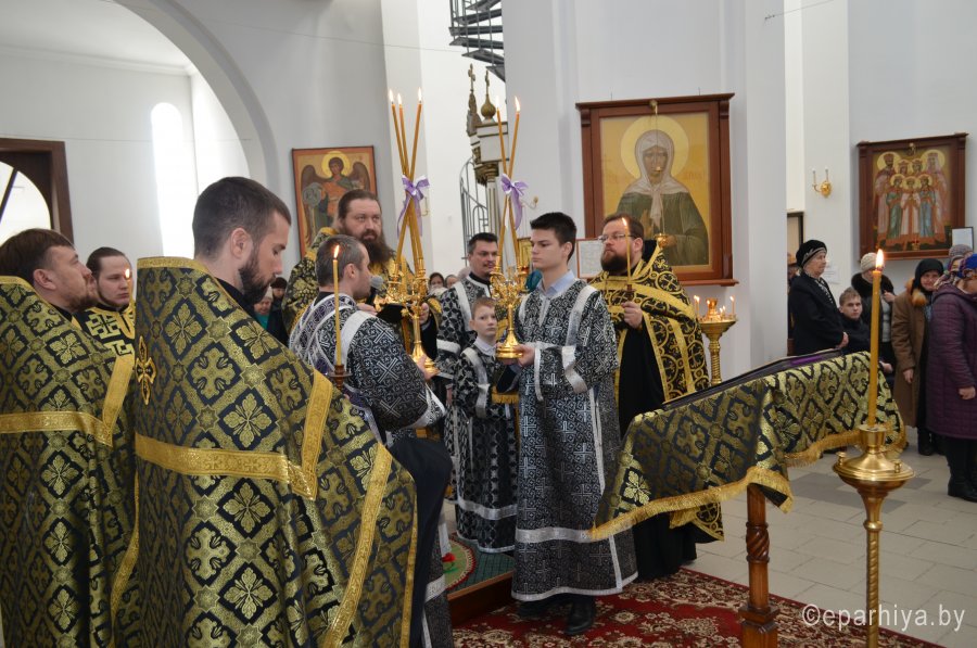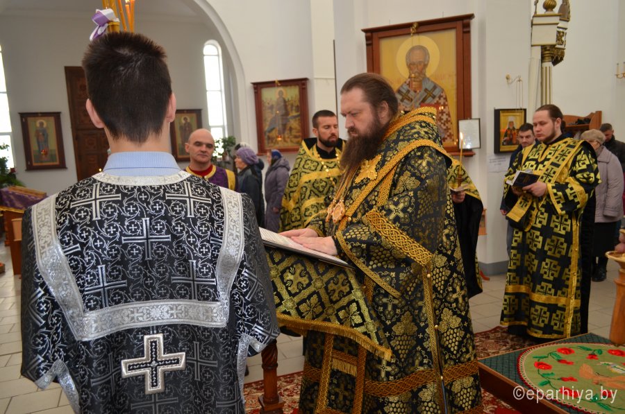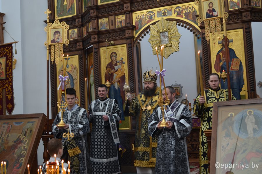 Вечером 15 марта, Преосвященнейший Амвросий, епископ Светлогорский, викарий Гомельской епархии, совершил 2-ю Пассию в храме Преображения Господня в г. Светлогорске. Его Преосвященству сослужили: благочинный Светлогорского округа, настоятель прихода храма Преображения Господня в г. Светлогорске протоиерей Александр Кисель, клирики прихода иерей Евгений Новик и Иерей Виктор Шевеленко. По окончании богослужения Владыка обратился к прихожанам храма со словами архипастырского наставления. |