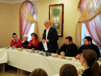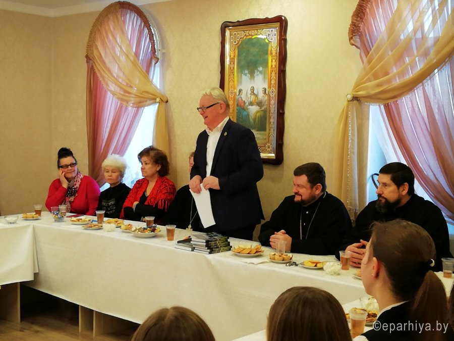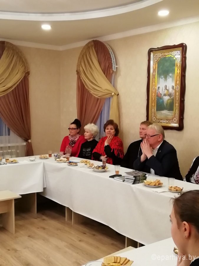 Литературный вечер, организаторами которого стали Информационный отдел Гомельской епархии и Гомельское областное отделение ОО «Союз писателей Беларуси» прошел 15 марта 2020г. в приходе храма Преображения Господня в г.Гомеля. В конференц-зале прихода собрались члены союза писателей Беларуси, духовенство храма, прихожане и воспитанники воскресной школы. С приветственным словом от имени Высокопреосвященнейшего Стефана, архиепископа Гомельского и Жлобинского к присутствующим обратился председатель Информационного отдела протоиерей Олег Кострома, напомнив об истории создания Дня православной книги и значимости книги в современном мире. Председатель Гомельского областного отделения ОО «Союз писателей Беларуси», лауреат областного конкурса «Православие – моя надежда», лауреат областной литературной премии им. К.Туровского, прозаик, публицист Владимир Николаевич Гаврилович высказал слова благодарности в адрес Владыки Стефана за содействие, поддержку и внимание к творчеству писателей. Владимир Николаевич особое внимание уделил православной литературе: «Православная книга – это книга, которая позволяет человеку развиваться как личности. В мире современных технологий, когда все увлечены гаджетами, книга уходит на второй план, однако человек, забывая книги – обкрадывает себя. Чтение хорошей литературы, несет воспитательный посыл, учит преодолевать прихоти, помогает обрести веру и любовь к ближним». В этот вечер в зале не было людей равнодушных к поэзии, каждый пришёл сюда по велению своей души и сердца. Кто-то сам пишет стихи, кто-то является их благодарным слушателем. Своим творчеством поделились: Болсун Михаил Михайлович, поэт, лауреат областной литературной премии им. К.Туровского; Кветковская Вера Фёдоровна, поэтесса, лауреат областного конкурса «Православие – моя надежда», лауреат областной литературной премии им. К.Туровского; Шклярова Нина Никифоровна, поэтесса, лауреат областного конкурса «Православие – моя надежда», лауреат областной литературной премии им. К.Туровского; Долбикова Лидия Дмитриевна, поэтесса, лауреат областного конкурса «Православие – моя надежда»; Равченко Ольга Ивановна, поэтесса, переводчик, публицист, лауреат областной литературной премии им. К.Туровского; Дмитриева Надежда Петровна, поэтесса, прозаик, лауреат областной литературной премии им. К.Туровского; Демчихин Николай Ефимович, кандидат на вступление в ОО «Союз писателей Беларуси», главный редактор газеты «Сельмашевец», прозаик, публицист; Инна Ивановна Зарецкая, поэтесса, прозаик, лауреат областной литературной премии им. К.Туровского. Не остались в стороне и ученики воскресной школы. Подростки с радостью приняли участие в вечере, с интересом слушали выступающих, а также сами прочли стихи, за что были отмечены памятным подарком - новой книгой Гавриловича В.Н., с автографом автора. Также во время вечера был дан старт литературному конкурсу «Православие – моя надежда!», основными темами которого в этом году станут 30-летие со дня возрождения Гомельской епархии и 75-летие Великой победы. Цель конкурса - поиск талантливых писателей и популяризация произведений на православную тематику. Начинающие и профессиональные авторы будут соревноваться в различных номинациях, в каждой из которой будет выбран один победитель. |