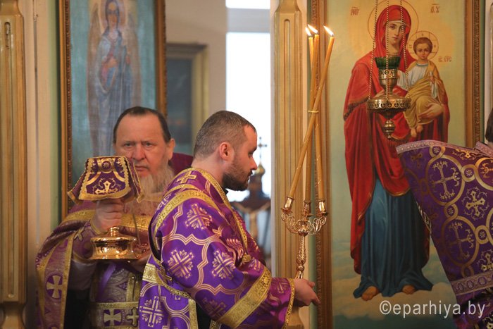 30 марта, в понедельник пятой седмицы Великого Поста, в день памяти Алексия, человека Божия, Божественную литургию Преждеосвященных Даров в храме святых двенадцати апостолов аг.Чирковичи возглавил Преосвященнейший Амвросий, епископ Светлогорский, викарий Гомельской епархии. Его Преосвященству сослужили: благочинный Светлогорского округа протоиерей Александр Кисель и духовенство округа. По окончании богослужения владыка Амвросий поздравил причастников с принятием Святых Христовых Таин, настоятеля храма архимандрита Алексия (Желенка) с Днём Ангела и обратился к молящимся со словами архипастырского назидания: «Дорогие братья и сестры, сегодня день памяти преподобного Алексия, человека Божия. Этот святой всю жизнь без остатка посвятил Христу, прожив до конца дней в нищете, посте и молитве. Он оставил все ради любви к Богу. Господь не требует от нас такой жертвы. Но мы должны помнить, что центром нашей жизни является Христос, поэтому должны соизмерять ее с Его учением. Каждый день своей жизни мы должны задавать себе вопросы: Христовы ли мы? Со Христом ли мы? Идем ли мы по жизни, следуя Его Божественным наставлениям? Если нет, то у нас еще есть время, чтобы исправить свои пути и прийти к Богу. Мы должны благодарить Его за возможность следовать за Ним, за возможность быть в храме, за возможность быть Его причастниками». |