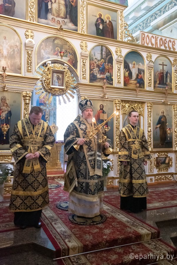 Божественную литургию Преждеосвященных Даров в четверг пятой седмицы Великого Поста в Петро-Павловском кафедральном соборе 2 апреля 2020г. совершил Высокопреосвященнейший Стефан, архиепископ Гомельский и Жлобинский. Высокопреосвященнейшему сослужили: протоиерей Георгий Алампиев и духовенство собора. После сугубой ектении владыка Стефан вознес молитву против коронавирусной инфекции. По окончании богослужения владыка Стефан поздравил причастников с принятием Святых Христовых Таин и обратился к молящимся со словами назидания |
