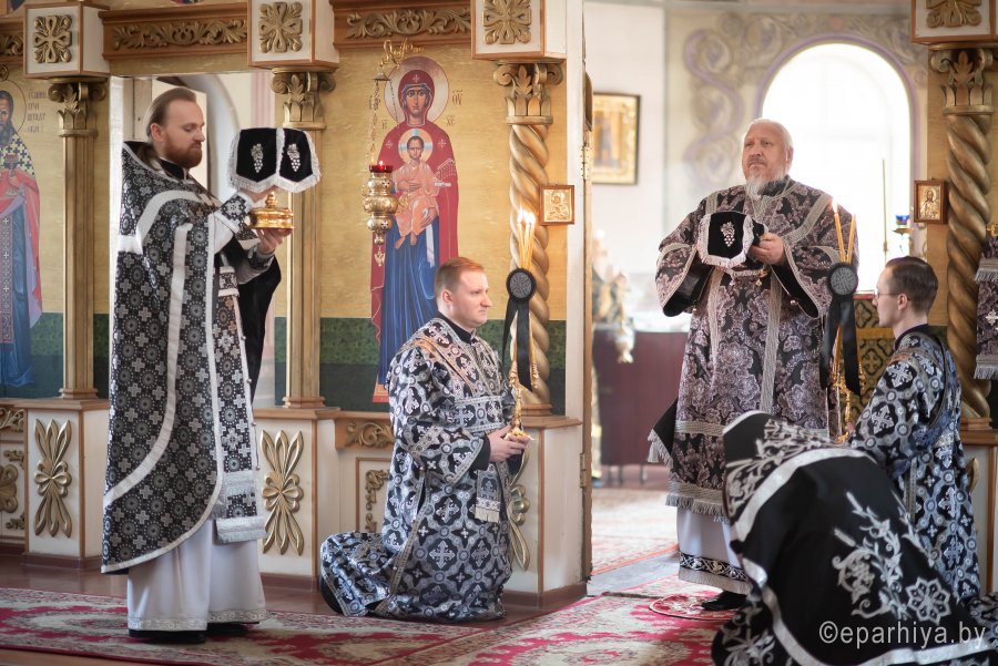 Божественную литургию Преждеосвященных Даров в пятницу пятой седмицы Великого Поста, день памяти прп. Серафима Вырицкого 3 апреля 2020г. в приходе храма святого праведного Иоанна Кормянского в г.Гомеле совершил Высокопреосвященнейший Стефан, архиепископ Гомельский и Жлобинский. Высокопреосвященнейшему сослужили: протоиерей Георгий Алампиев, настоятель прихода иерей Дмитрий Жданов и духовенство епархии. После сугубой ектении владыка Стефан вознес молитву против коронавирусной инфекции. По окончании богослужения владыка Стефан поздравил причастников с принятием Святых Христовых Таин и обратился к молящимся со словами архипастырского назидания |