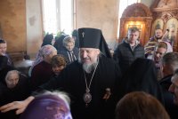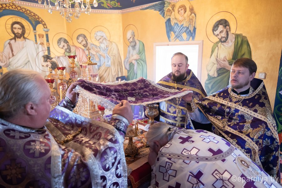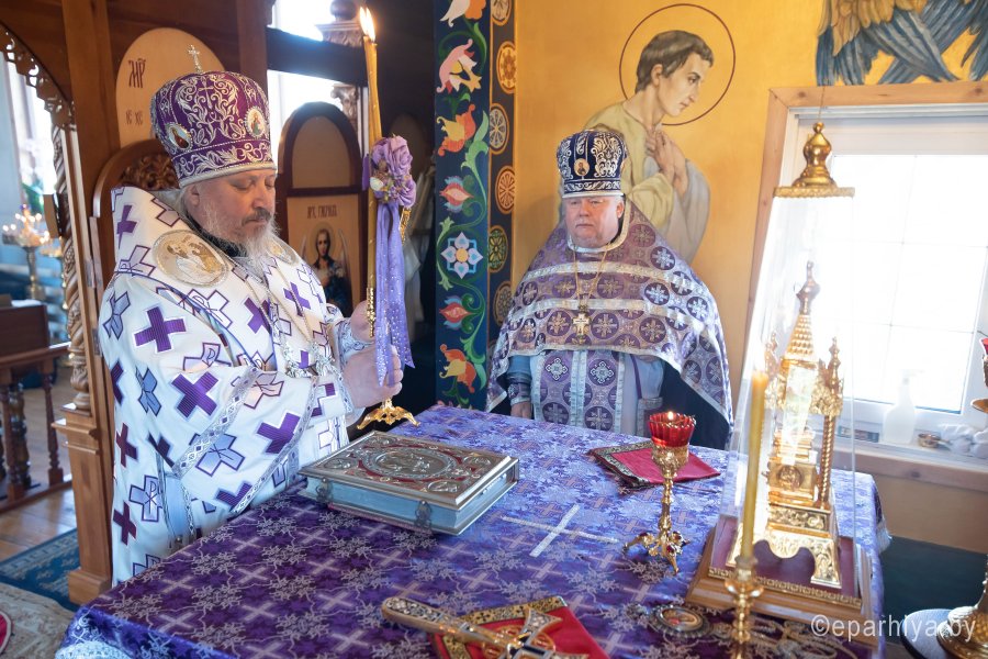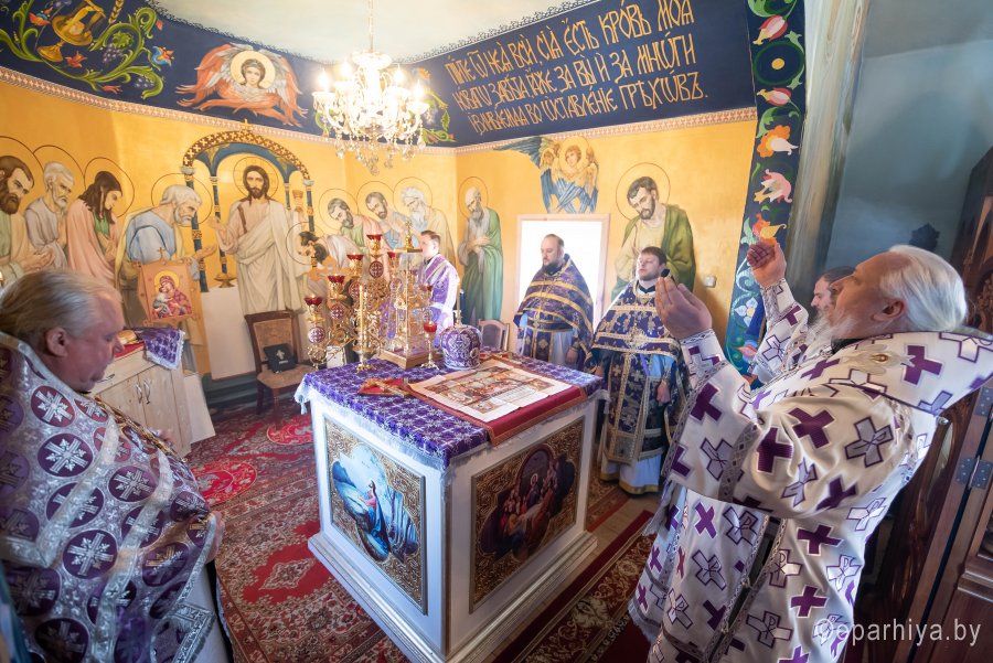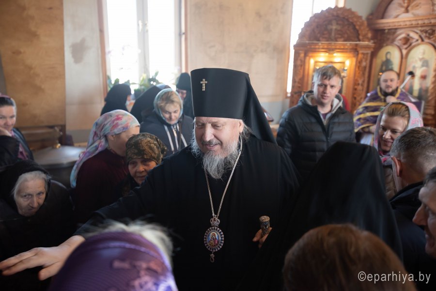 Божественную литургию в Неделю пятую Великого Поста, день память прп. Марии Египетской 5 апреля 2020г. в Успенском женском монастыре д.Казимирово совершил Высокопреосвященнейший Стефан, архиепископ Гомельский и Жлобинский. Высокопреосвященнейшему сослужили: секретарь Гомельской епархии протоиерей Георгий Алампиев, благочинный Жлобинского благочинного округа протоиерей Василий Пилипенко и духовенство епархии. После сугубой ектении владыка Стефан вознес молитву против коронавирусной инфекции. По окончании богослужения владыка Стефан поздравил причастников с принятием Святых Христовых Таин и обратился к молящимся со словами архипастырского назидания. Закончилось богослужение молебным пением и сугубыми молитвами у почитаемого образа Божией Матери «Казимировская». Икона Божией Матери "Казимировская" известна с 1713 г., когда речицкий подкоморий Казимир Юдицкий основал монастырь в честь чудотворной иконы, доставшейся ему от предков. Вскоре вблизи монастыря возникло местечко, получившее название Казимирово. Где-то в 1880-х гг. здесь была построена Свято-Успенская церковь. В ней эта икона и находилась. Там же хранилась книжка с описанием чудес от иконы с 1720 по 1764 год, ныне затерянная. В 1812 г. монастырские строения были разрушены войсками Наполеона. В 1839 г. монастырь был закрыт, церковь стала приходской. В 1933-м году закрыли и храм, разобрали на бревна и построили школу. Икона исчезла, но была обретена в 2000-м году. |