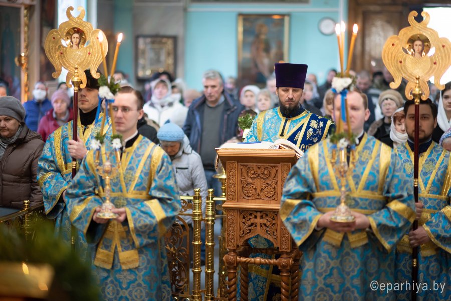 «Радуйся, Благодатная», – приветствовал Марию Ангел, с этих слов начиналась благая весть для всего человечества, надежда на обещанное Богом спасение после грехопадения человека. Божественную литургию в праздник Благовещения Пресвятой Богородицы в Петро-Павловском кафедральном соборе 7 апреля 2020г. совершил Высокопреосвященнейший Стефан, архиепископ Гомельский и Жлобинский. Высокопреосвященнейшему сослужили: секретарь Гомельской епархии протоиерей Георгий Алампиев и духовенство собора. За Литургией были вознесены особые прошения и молитва о здравии во время эпидемии. Проповедь перед Причастием произнес клирик Петро-Павловского кафедрального собора протоиерей Вадим Лапицкий. По окончании богослужения владыка Стефан поздравил причастников с принятием Святых Христовых Таин и обратился к молящимся со словами назидания. Закончилось богослужение молебным пением. |
