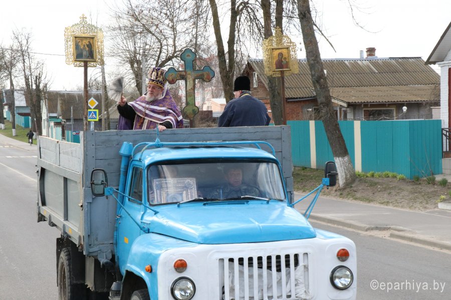 4 апреля 2020г., вокруг города Ветки прошёл автомобильный Крестный ход с иконой Божией Матери "Умиление", который возглавил настоятель прихода Преображения Господня протоиерей Михаил Борисёнок. Перед началом Крестного хода в храме прошёл молебен в связи с распространением эпидемии коронавирусной инфекции. Затем священнослужители объехали с иконой вокруг районного центра и по основным улицам города. По пути крестного хода священнослужители читали молитвы с прошениями о прекращении инфекции и окропляли улицы святой водой. Жители города с интересом наблюдали за движением машины с хоругвями, надеясь, что с Божьей помощью и заступничеством Богородицы последствия эпидемии для Ветковского района будут минимальными. |