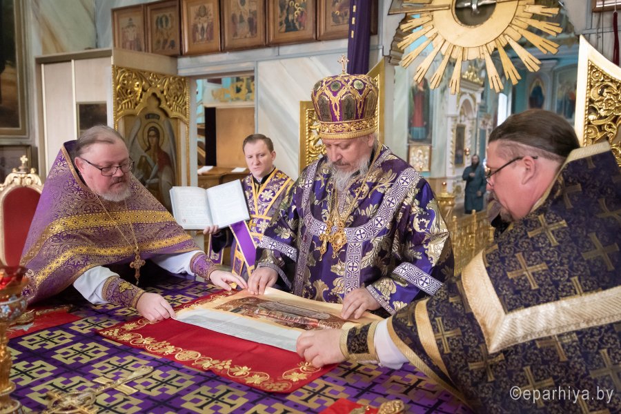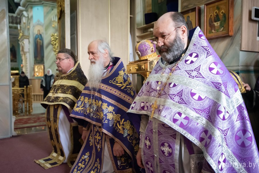 Божественную литургию Преждеосвященных Даров в пятницу шестой седмицы Великого Поста 10 апреля 2020г. в Петро-Павловском кафедральном соборе г.Гомеля совершил Высокопреосвященнейший Стефан, архиепископ Гомельский и Жлобинский. Высокопреосвященнейшему сослужили: благочинный Добрушского округа протоиерей Алексей Пилипенко, духовенство собора и епархии. За Литургией были вознесены особые прошения и молитва о здравии во время эпидемии. По благословению Высокопреосвященнейшего Павла, митрополита Минского и Заславского, за богослужением Высокопреосвященнейший Стефан удостоил иерархическими наградами ряд священнослужителей: Правом служения Божественной литургии с отверстыми Царскими Вратами до Херувимской песни: 1. протоиерея Дмитрия Гончарова 2. протоиерея Алексея Пилипенко 3. протоиерея Виктора Ганачкова Права ношения палицы: 1. иерей Георгий Яковцев 2. протоиерей Александр Бонадыков 3. иерей Сергий Ильичев По окончании богослужения владыка Стефан поздравил причастников с принятием Святых Христовых Таин и обратился к молящимся со словами архипастырского назидания. Закончилось богослужение молебным пением. |