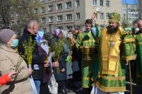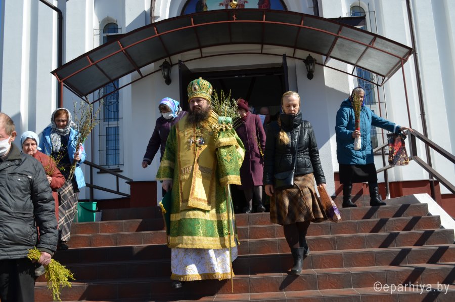 12 апреля, в праздник Входа Господня в Иерусалим, Божественную литургию в храме Преображения Господня в г. Светлогорске возглавил Преосвященнейший Амвросий, епископ Светлогорский, викарий Гомельской епархии. Его Преосвященству сослужили: благочинный Светлогорского округа протоиерей Александр Кисель и духовенство храма. После сугубой ектении владыка Амвросий вознес молитву против коронавирусной инфекции. По завершении богослужения архипастырь сердечно поздравил всех с праздником, причастников с принятием Святых Христовых Таин, а затем зачитал послание Священного Синода Белорусской Православной Церкви к пастырям, верующим и народу Беларуси в связи с эпидемией коронавирусной инфекции. По окончании проповеди Владыка Амвросий совершил освящение вербы. |