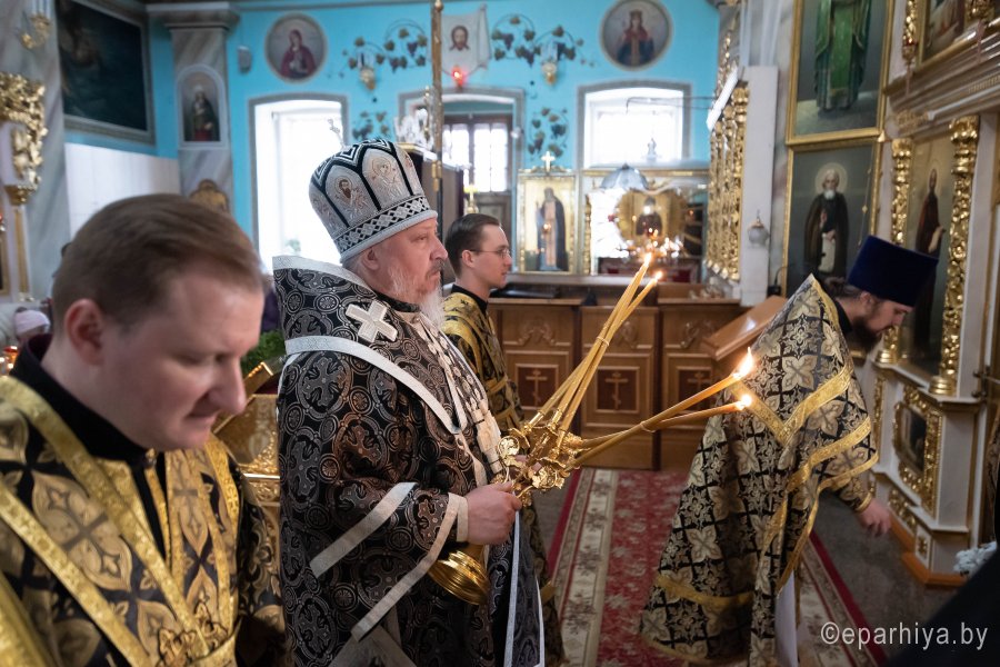 Божественную литургию Преждеосвященных Даров в Великий понедельник 13 апреля 2020г. в Петро-Павловском кафедральном соборе г.Гомеля совершил Высокопреосвященнейший Стефан, архиепископ Гомельский и Жлобинский в сослужении духовенства собора. После сугубой ектении владыка Стефан вознес молитву против коронавирусной инфекции. По окончании богослужения Владыка поздравил причастников с принятием Святых Христовых Таин и обратился к молящимся со словами архипастырского назидания. |