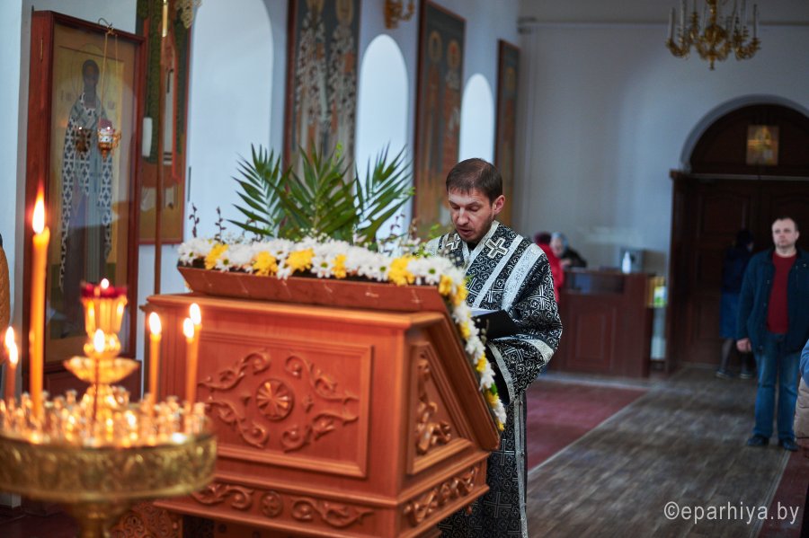 13 апреля, в Великий понедельник Страстной седмицы, епископ Светлогорский Амвросий, викарий Гомельской епархии, совершил Божественную литургию Преждеосвященных Даров в монастырском Никольском храме в г. Гомеле. Его Преосвященству сослужили братия обители. Пресс-служба Никольского монастыря |