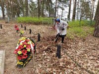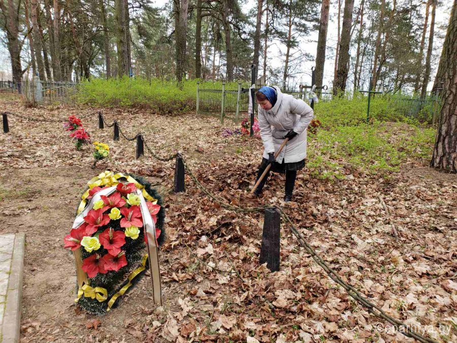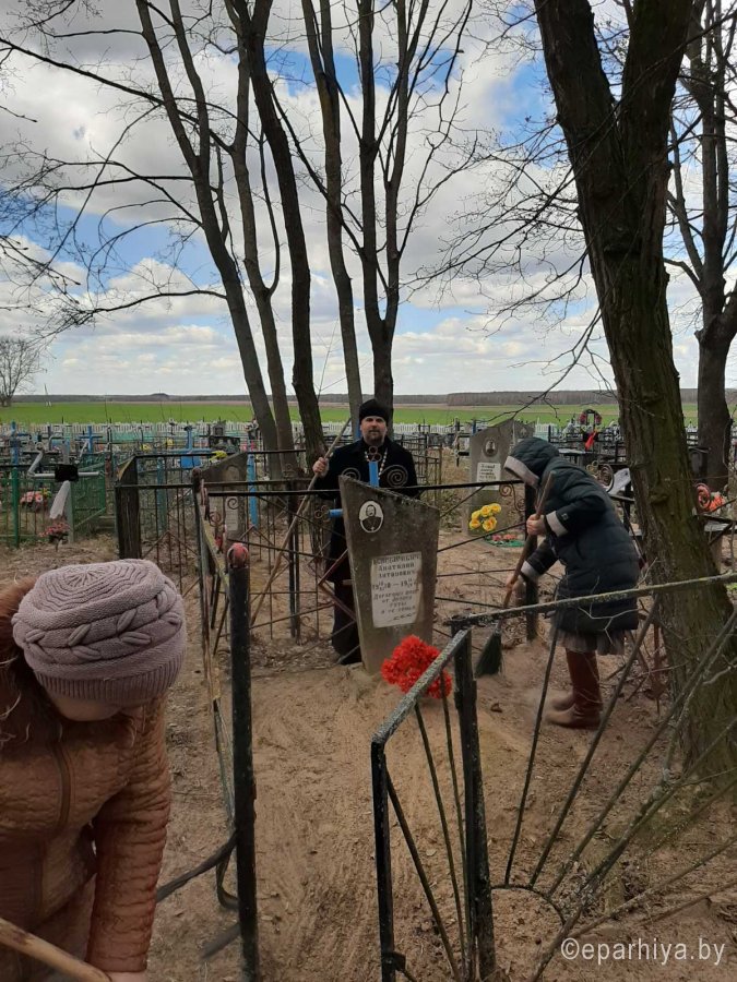 В преддверии Пасхи Христовой приходы Рогачёвского благочиния стараются позаботиться о наведении порядка в местах захоронений. 14 апреля молодёжь прихода храма святого благоверного князя Александра Невского в г.Рогачёве убрала территорию у памятника воинам 61 и 167 стрелковых дивизий и у могилок неизвестных солдат, защищавших в июле 1941 года Рогачёв ценою своей жизни. Протоиерей Владимир Янчесов, настоятель прихода храма Святого Духа аг.Дворец, с прихожанами навели порядок у могилы протоиерея Петра Калиновского. Позаботились о могилах почивших священников и прихожане храма Покрова Пресвятой Богородицы аг. Довск. Вместе с настоятелем прихода протоиереем Виталием Левчуком убрали могилы протоиерея Анатолия Гандаровича и иеросхимонаха Артемия Потоцкого. В агрогородке Тихиничи прихожане храма Святого Архангела Михаила вместе с настоятелем прихода протоиереем Николаем Степановым привели в порядок территорию вокруг братской могилы. |