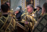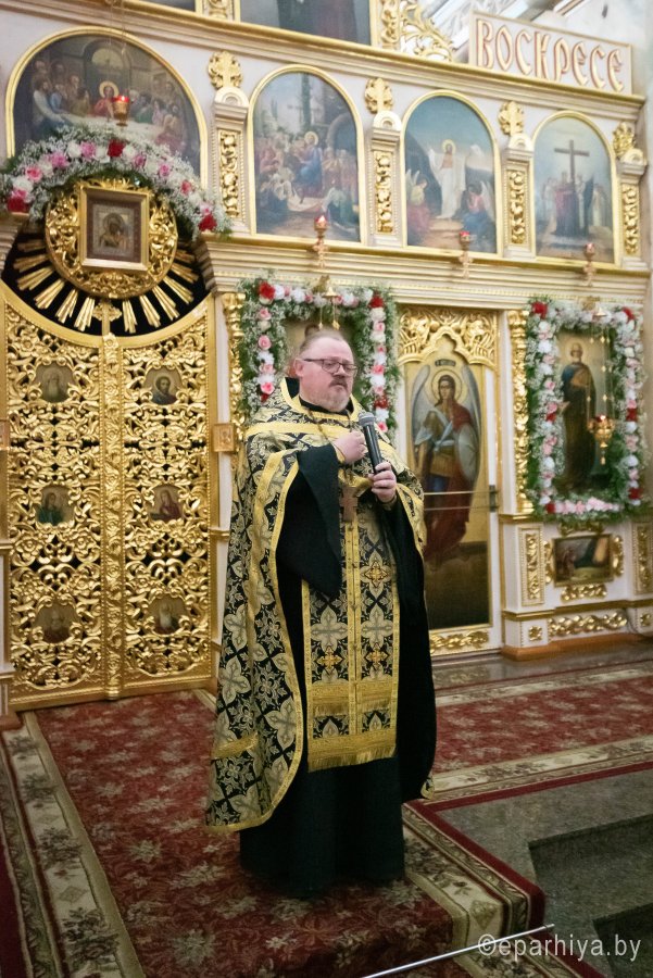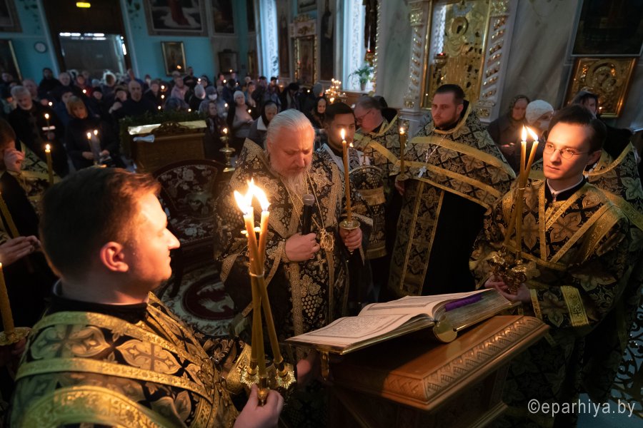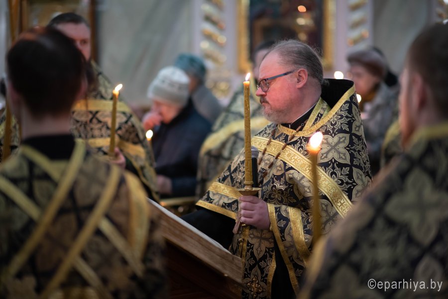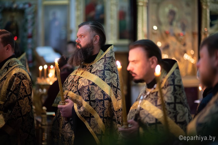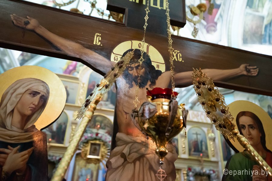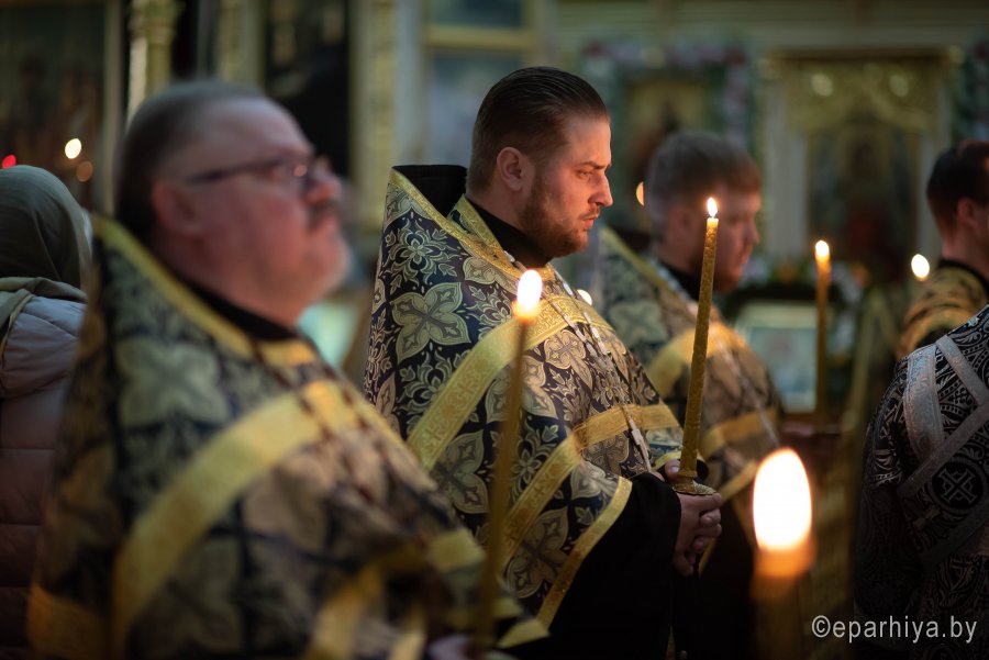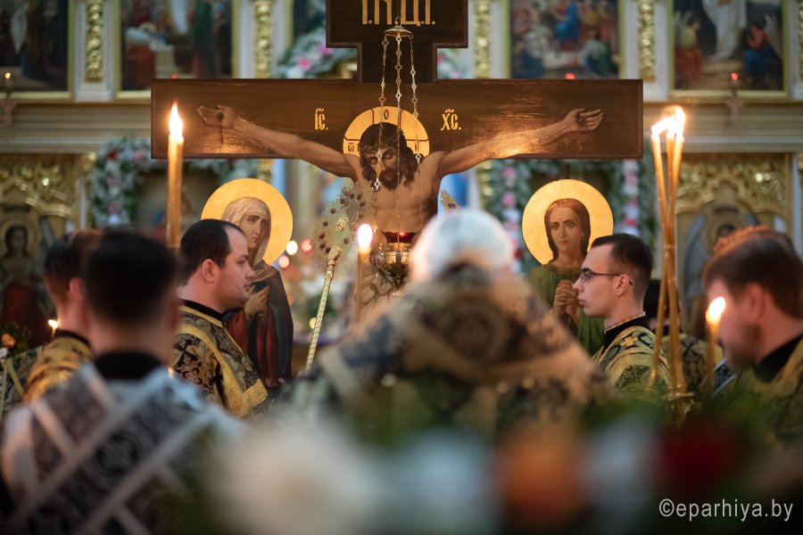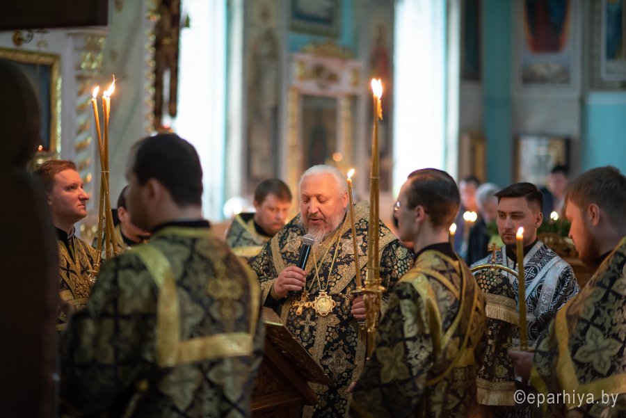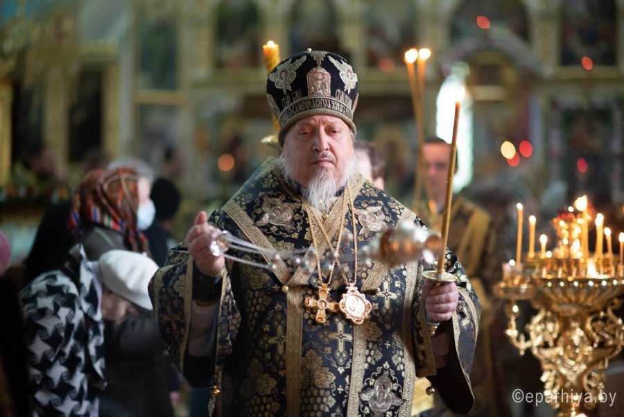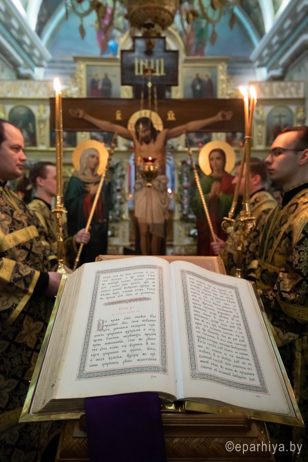 16 апреля 2020г., в канун Великого Пятка, Воспоминания Святых спасительных Страстей Господа нашего Иисуса Христа, Высокопреосвященнейший Стефан, архиепископ Гомельский и Жлобинский, совершил утреню с чтением 12-и Страстных Евангелий в Петро-Павловском кафедральном соборе г.Гомеля. Высокопреосвященнейшему сослужили: секретарь Гомельской епархии протоиерей Георгий Алампиев и духовенство собора. По окончании богослужения владыка Стефан обратился к духовенству и молящимся со словами архипастырского назидания. Все сегодняшнее богослужение, посвящено благоговейному воспоминанию спасительных страданий и крестной смерти Иисуса Христа. Евангелие повествует о прощальной беседе Иисуса Христа со Своими учениками на Тайной Вечери, о страшной ночи, одиноко проведенной Христом в Гефсиманском саду в ожидании смерти, о Его распятии, смерти и погребении… С этого дня до самой Пасхи наступает благоговейное молчание, как знак нашего глубокого сопереживания Распятому Господу. |