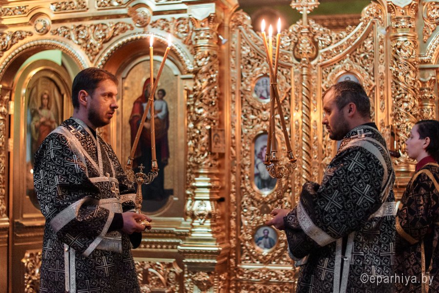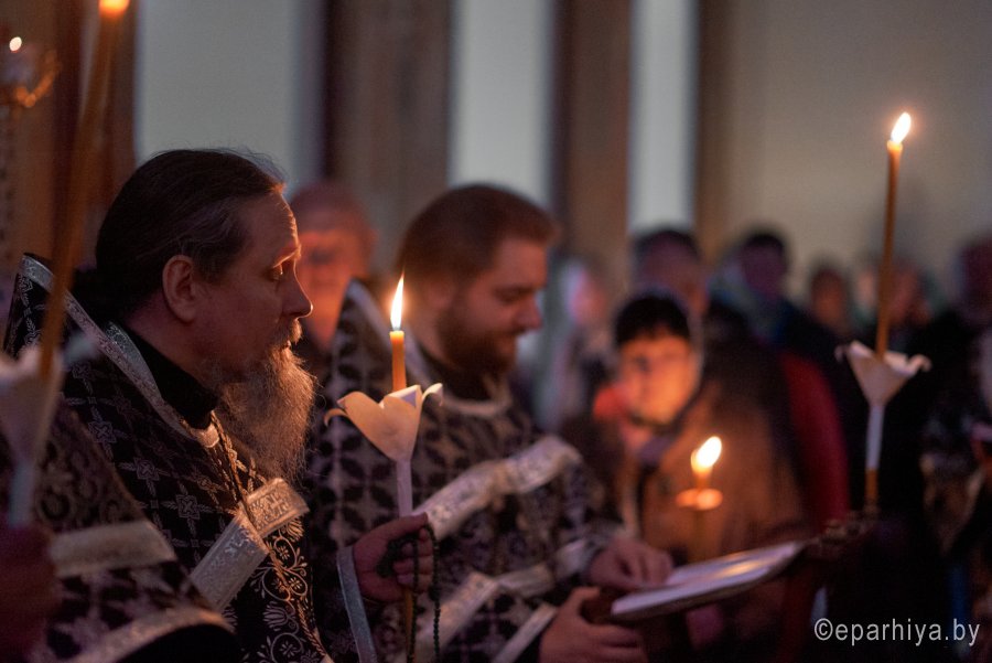 16 апреля, в Великий четверг, епископ Светлогорский Амвросий, викарий Гомельской епархии, совершил вечернее богослужение с чтением двенадцати Страстных Евангелий в Никольском мужском монастыре в г. Гомеле. Владыке сослужили братия обители в священном сане. Пресс-служба Никольского монастыря |