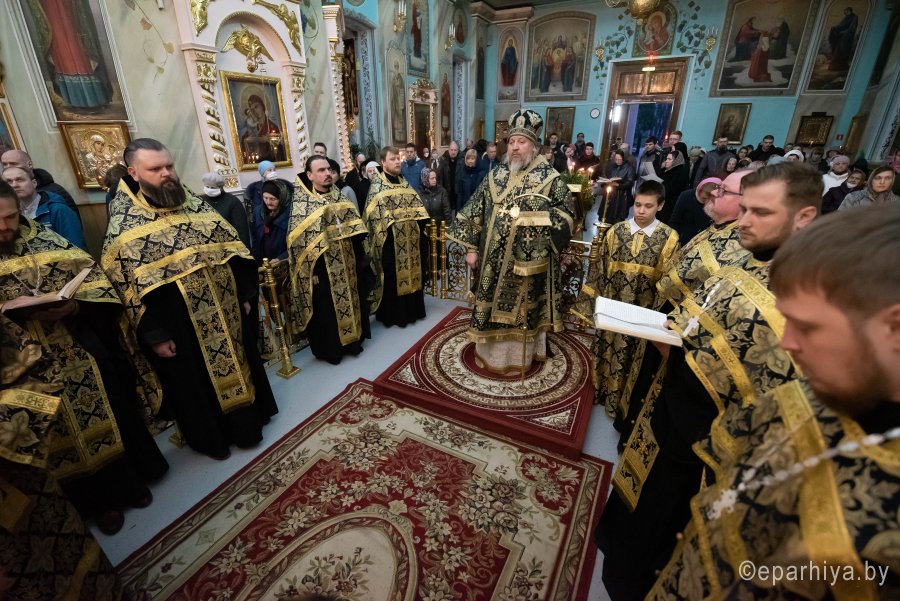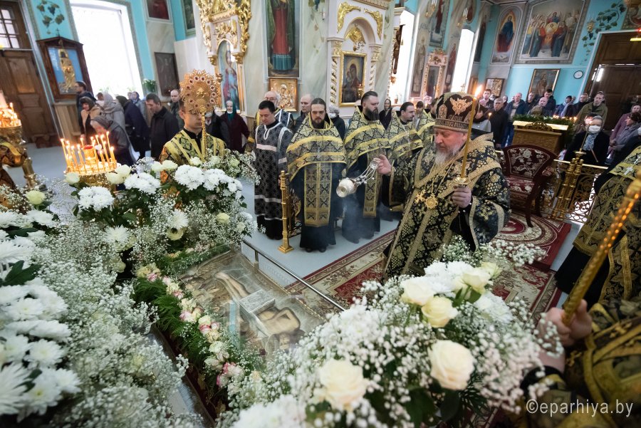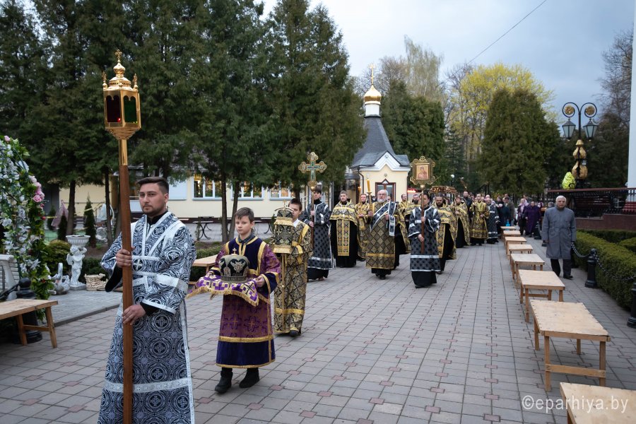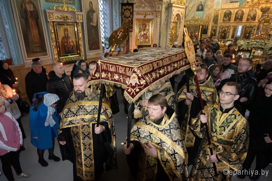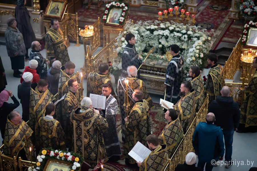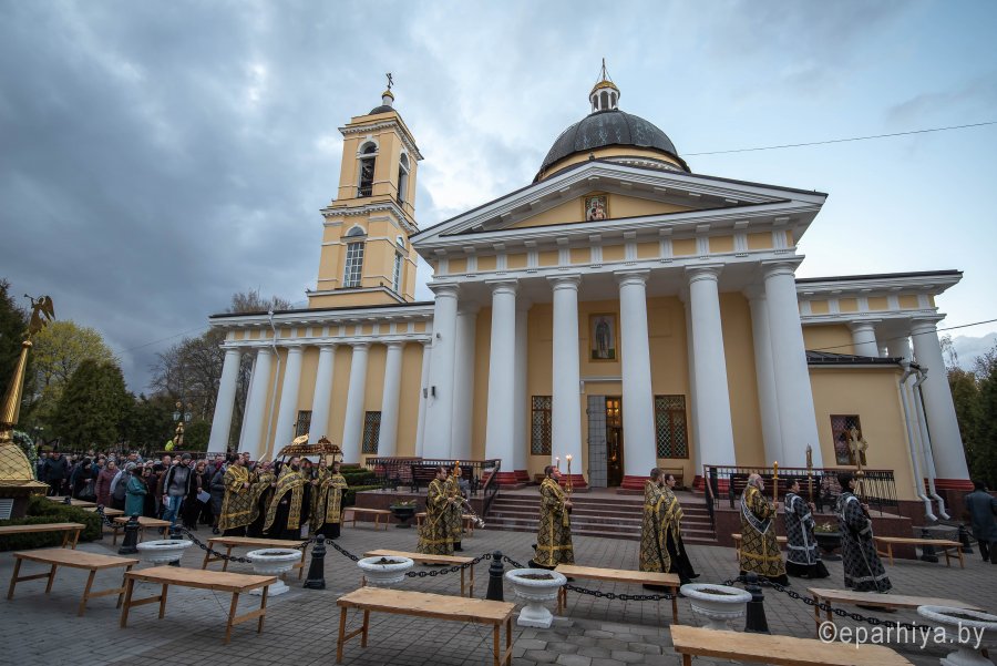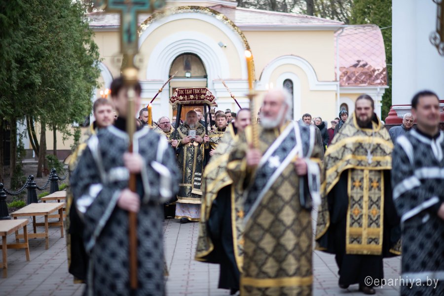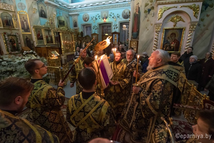 Утреню с чтением Непорочных во Святую и Великую Субботу (погребения Господа нашего Иисуса Христа) 17 апреля 2020г., в канун Великой Субботы, Высокопреосвященнейший Стефан, архиепископ Гомельский и Жлобинский, совершил в Петро-Павловском кафедральном соборе г. Гомеля. Высокопреосвященнейшему сослужили: секретарь Гомельской епархии протоиерей Георгий Алампиев и духовенство собора. После великого славословия, под пение погребального «Святый Боже», был совершен крестный ход с Плащаницей. По окончании богослужения владыка Стефан обратился к духовенству и молящимся со словом назидания. |
