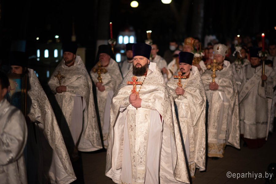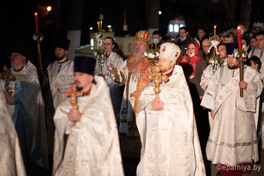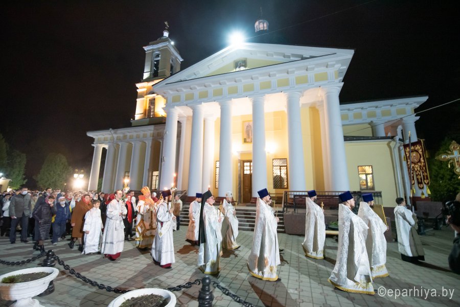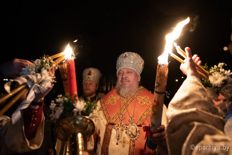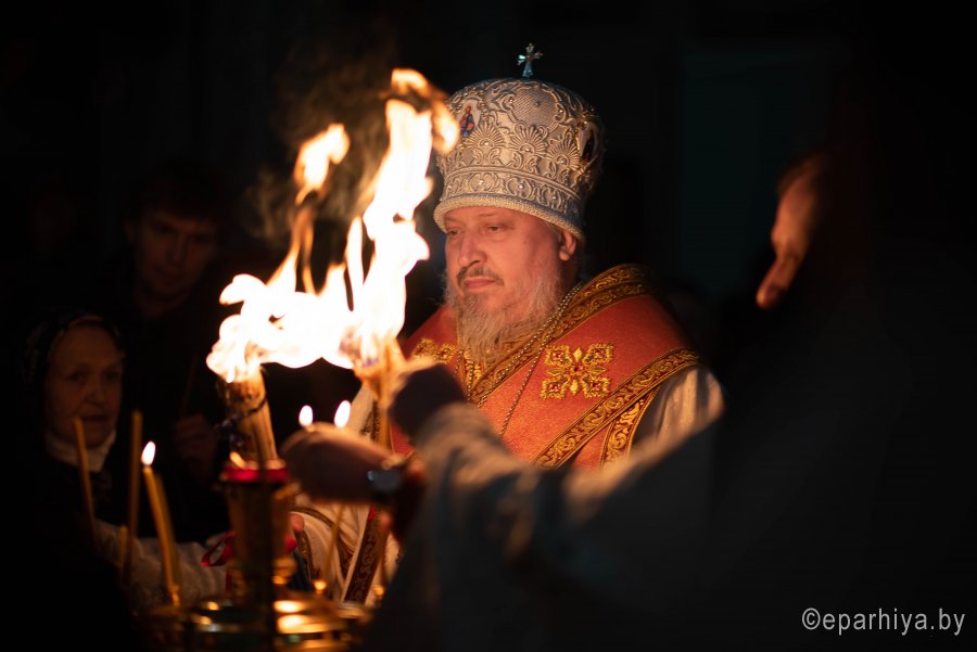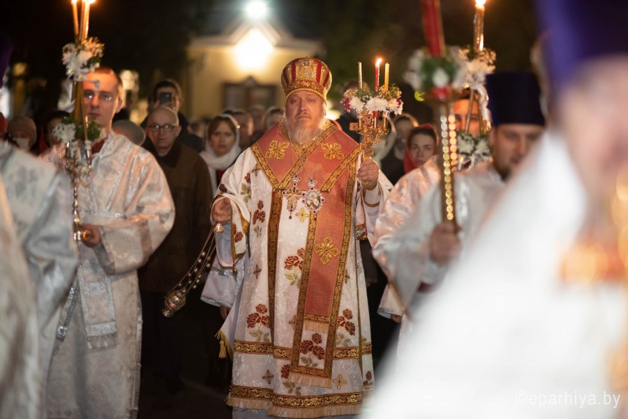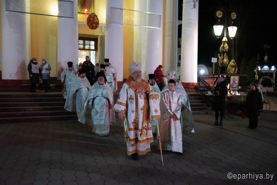 В пасхальную ночь с 18 на 19 апреля 2020 года, в кафедральном соборе первоверховных апостолов Петра и Павла г.Гомеля Высокопреосвященнейший Стефан, архиепископ Гомельский и Жлобинский, возглавил праздничные богослужения: полунощницу, крестный ход, заутреню и Божественную Литургию свт. Иоанна Златоуста. Высокопреосвященнейшему сослужили: секретарь Гомельской епархии протоиерей Георгий Алампиев и духовенство собора. После сугубой ектении владыка Стефан вознес молитву против коронавирусной инфекции. По заамвонной молитве Высокопреосвященнейший совершил освящение артоса. За богослужением были зачитаны пасхальные послания Святейшего Патриарха Кирилла и Высокопреосвященнейшего митрополита Павла, Патриаршего экзарха всея Беларуси. За Божественной литургией был торжественно встречен Благодатный Огонь из храма Гроба Господня в Иерусалиме. По окончании богослужения владыка Стефан поздравил духовенство и прихожан со Светлым Христовым Воскресеньем, причастников с принятием Святых Христовых Таин и обратился к молящимся со словами архипастырского назидания,пожелав чтобы пасхальная радость всегда пребывала в их сердцах. |