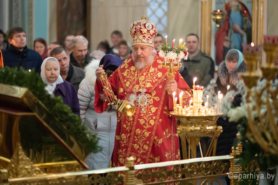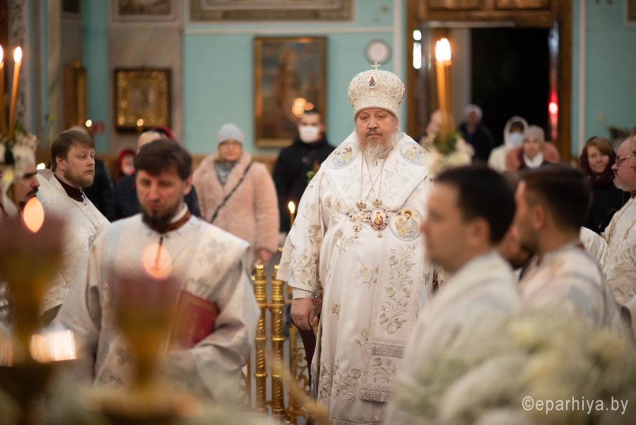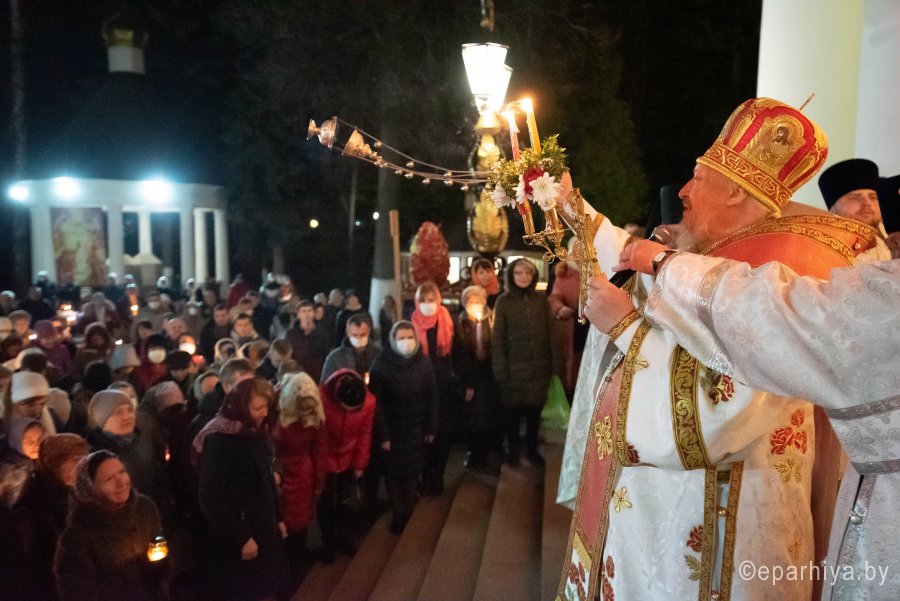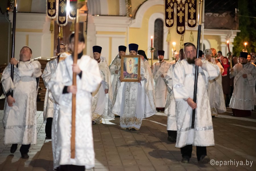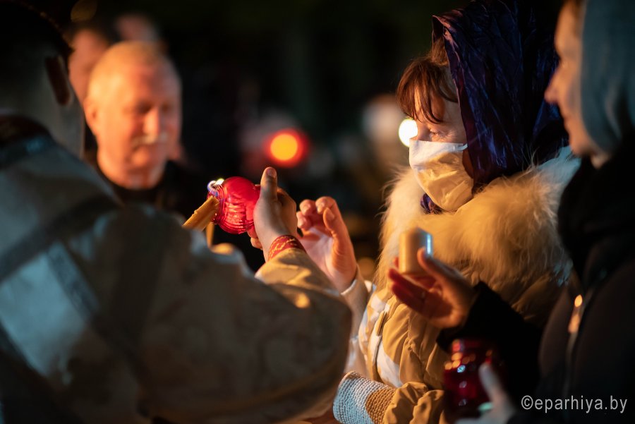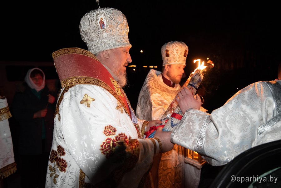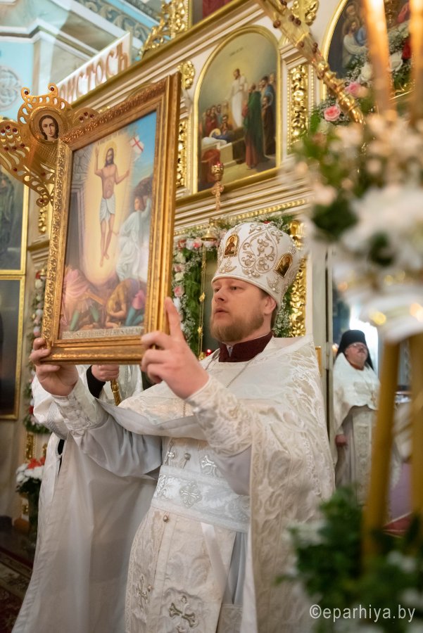 В пасхальную ночь с 18 на 19 апреля 2020 года, в кафедральном соборе первоверховных апостолов Петра и Павла г.Гомеля Высокопреосвященнейший Стефан, архиепископ Гомельский и Жлобинский, возглавил праздничные богослужения: полунощницу, крестный ход, заутреню и Божественную Литургию свт. Иоанна Златоуста. Высокопреосвященнейшему сослужили: секретарь Гомельской епархии протоиерей Георгий Алампиев и духовенство собора. После сугубой ектении владыка Стефан вознес молитву против коронавирусной инфекции. По заамвонной молитве Высокопреосвященнейший совершил освящение артоса. За богослужением были зачитаны пасхальные послания Святейшего Патриарха Кирилла и Высокопреосвященнейшего митрополита Павла, Патриаршего экзарха всея Беларуси. За Божественной литургией был торжественно встречен Благодатный Огонь из храма Гроба Господня в Иерусалиме. По окончании богослужения владыка Стефан поздравил духовенство и прихожан со Светлым Христовым Воскресеньем, причастников с принятием Святых Христовых Таин и обратился к молящимся со словами архипастырского назидания,пожелав чтобы пасхальная радость всегда пребывала в их сердцах. |