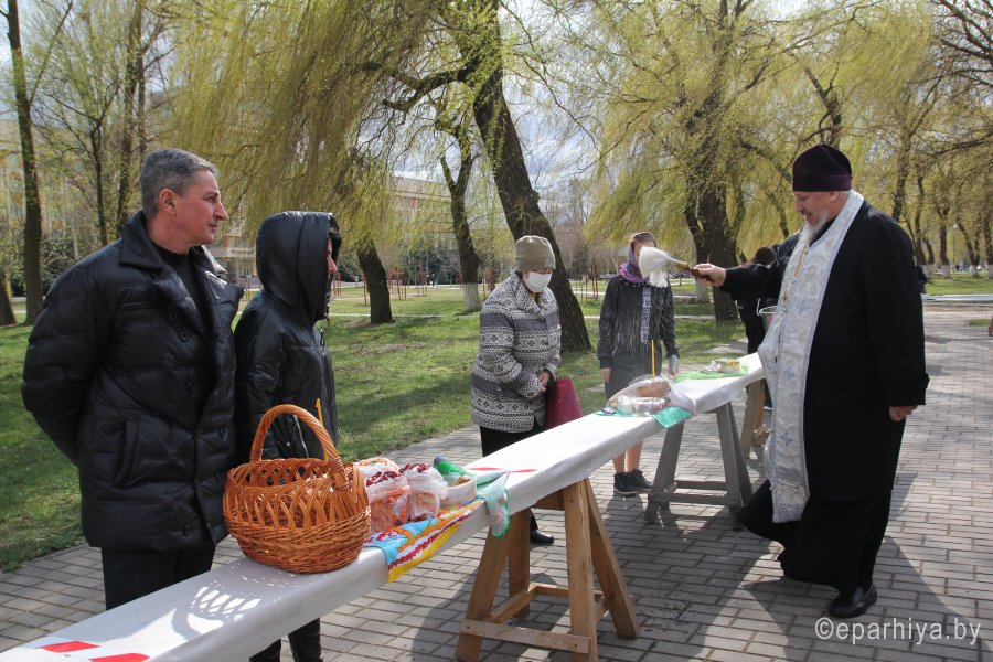 Высокопреосвященнейший Стефан, архиепископ Гомельский и Жлобинский в Великую Субботу 18 апреля 2020г., традиционно посетил храмы г. Гомеля: св. прав. Иоанна Кормянского, храм Святого Архангела Михаила, иконы Божией Матери «Иверская», св. блг. кн Александра Невского и Преображения Господня, в которых пообщался с прихожанами, освятил куличи и поприветствовал всех с Великой Субботой. |