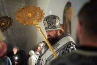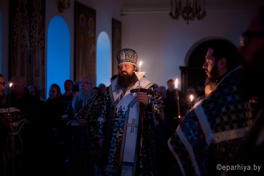 Преосвященный Амвросий совершил утреню с чином погребения Плащаницы