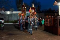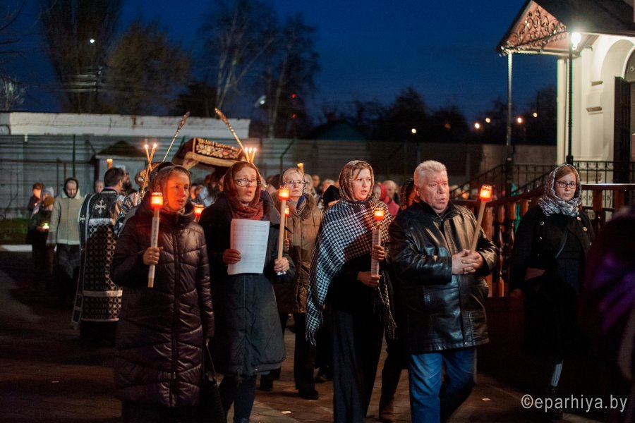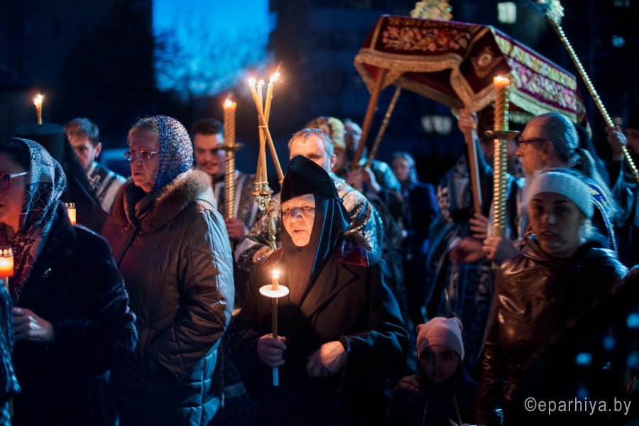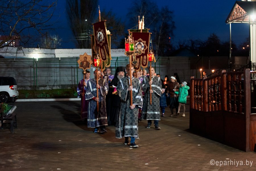 17 апреля, в канун Великой Субботы, епископ Светлогорский Амвросий, викарий Гомельской епархии, совершил утреню с чином погребения Господа нашего Иисуса Христа в Никольском мужском монастыре.Братия обители в священном сане сослужили владыке. После великого славословия с пением погребального «Святый Боже» архипастырь возглавил крестный ход с Плащаницей. Пресс-служба Никольского монастыря |