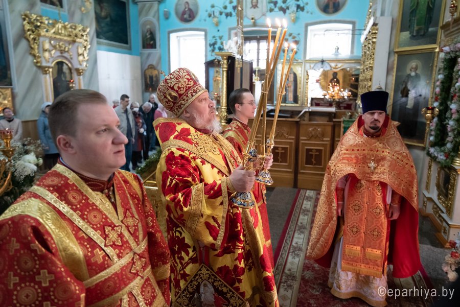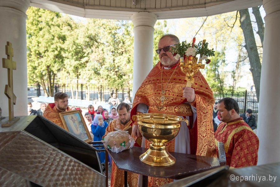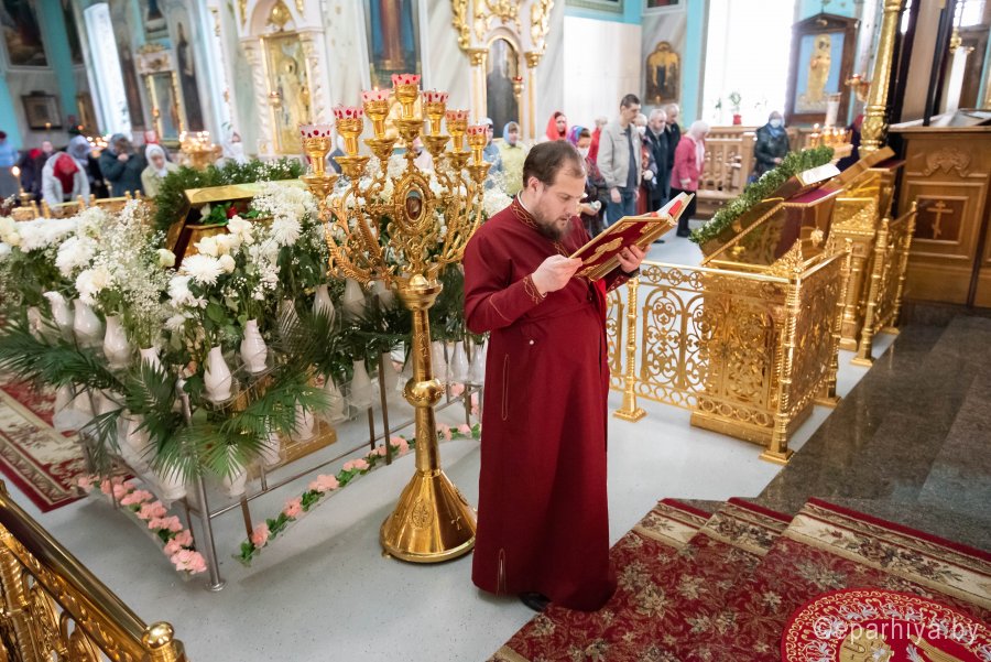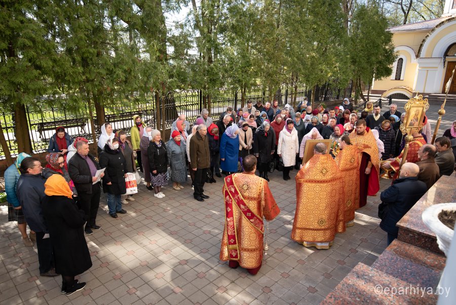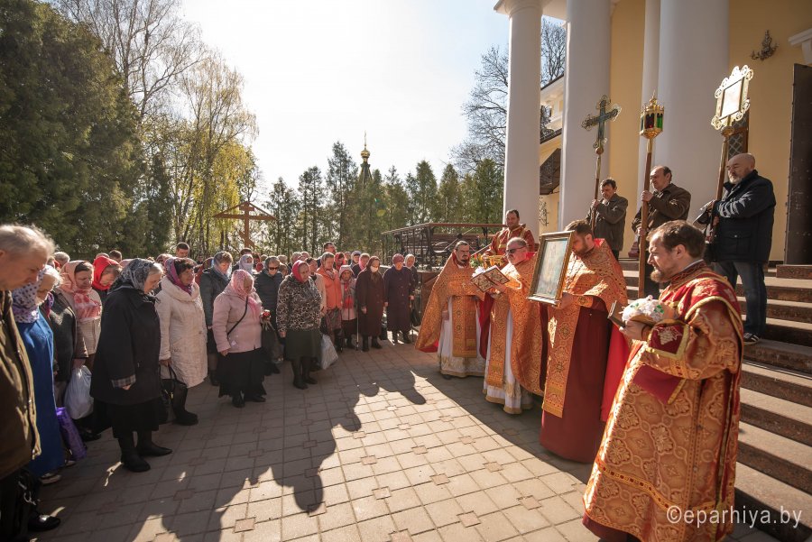 Божественную литургию в пятницу Светлой Седмицы, в день празднования Иконы Божией Матери "Живоносный Источник" 24 апреля 2020г. Высокопреосвященнейший Стефан, архиепископ Гомельский и Жлобинский, совершил в Петро-Павловском кафедральном соборе г.Гомеля в сослужении духовенства собора. После сугубой ектении владыка Стефан вознес молитву против зловредного поветрия. По окончании богослужения состоялся крестный ход. |