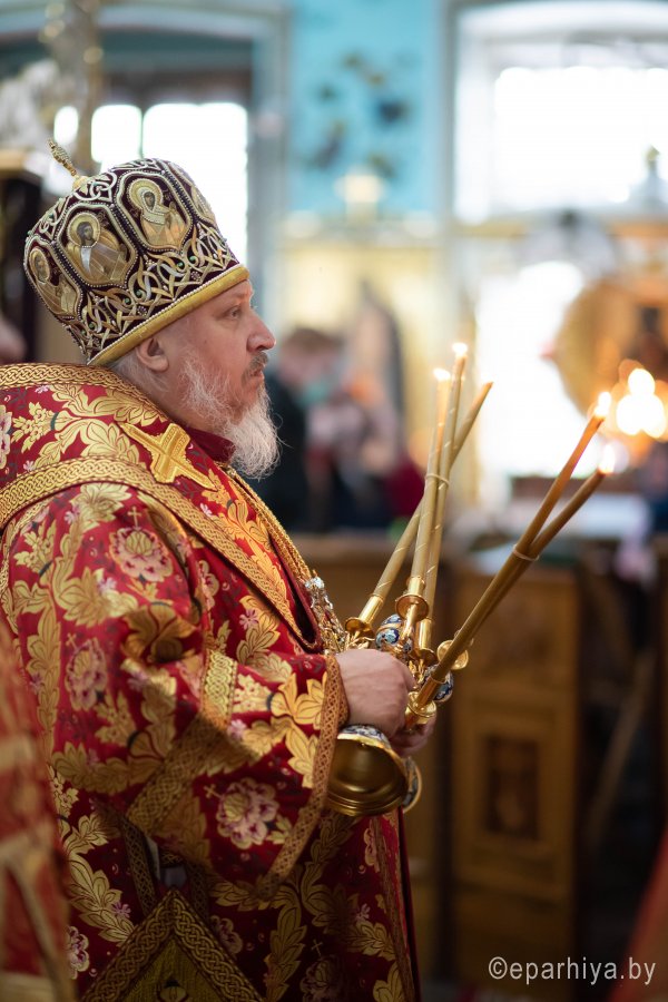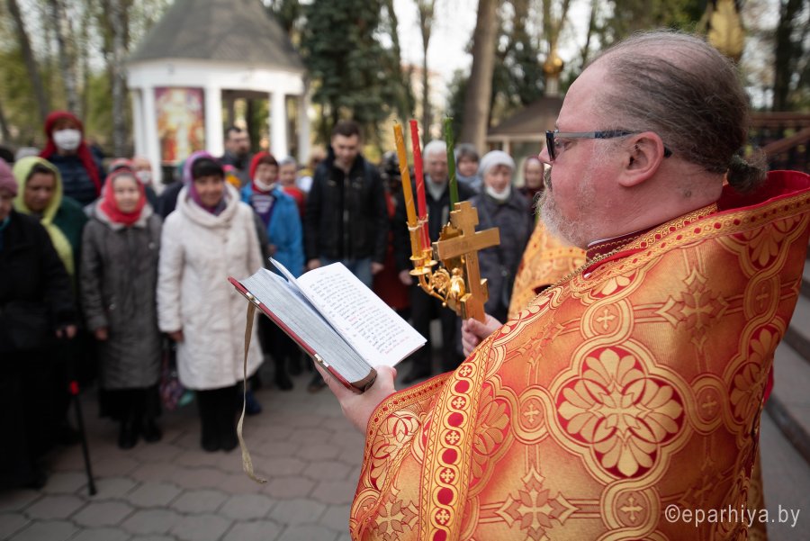 Божественную литургию в субботу Светлой Седмицы, 25 апреля 2020г. Высокопреосвященнейший Стефан, архиепископ Гомельский и Жлобинский, совершил в Петро-Павловском кафедральном соборе г.Гомеля в сослужении духовенства собора. После сугубой ектении владыка Стефан вознес молитву против зловредного поветрия. По окончании богослужения состоялся крестный ход. |