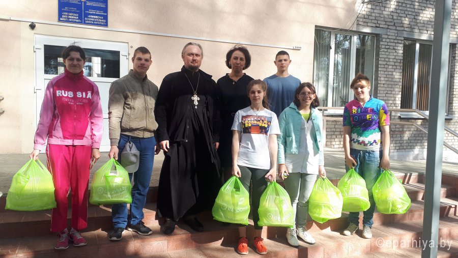 24 апреля в дни Светлой седмицы в рамках благотворительной акции "Пасхальная радость" клирик храма Иверской иконы Божией Матери в г.Гомеле протоиерей Андрей Шихалов передал сладкие подарки в ГУО "Улуковская школа- интернат" и спорт инвентарь в Дуяновский дом престарелых и инвалидов. |