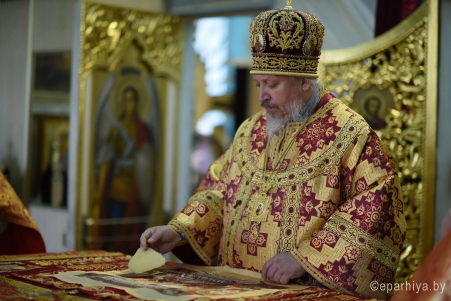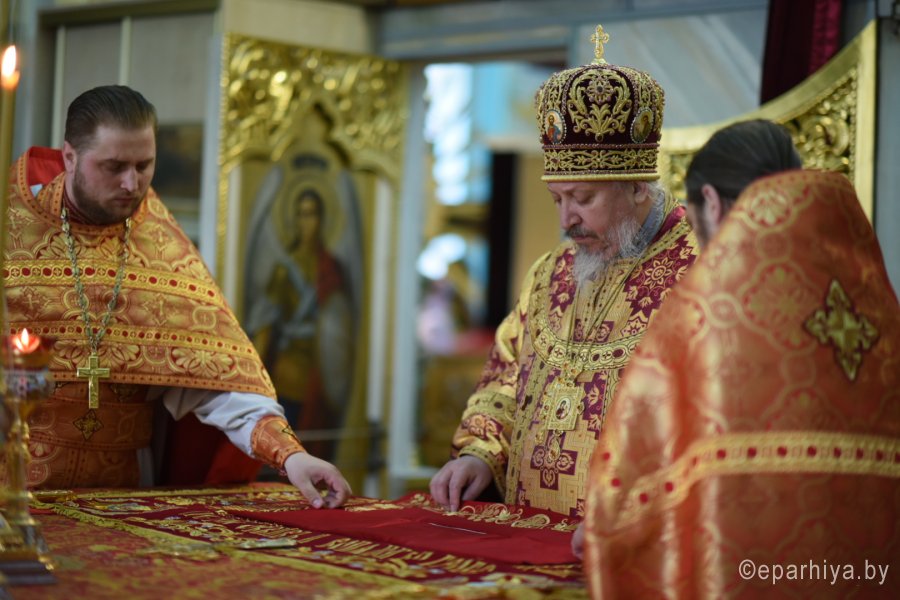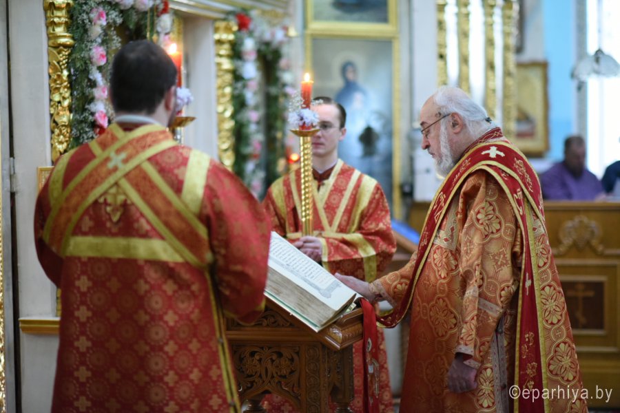 Божественную литургию в пятницу 2-ой Седмицы по Пасхе 1 мая 2020г. Высокопреосвященнейший Стефан, архиепископ Гомельский и Жлобинский, совершил в Петро-Павловском кафедральном соборе г.Гомеля в сослужении духовенства собора. После сугубой ектении владыка Стефан вознес молитву против зловредного поветрия. По окончании богослужения Владыка поздравил причастников с принятием Святых Христовых Таин и обратился к молящимся со словами архипастырского назидания. |