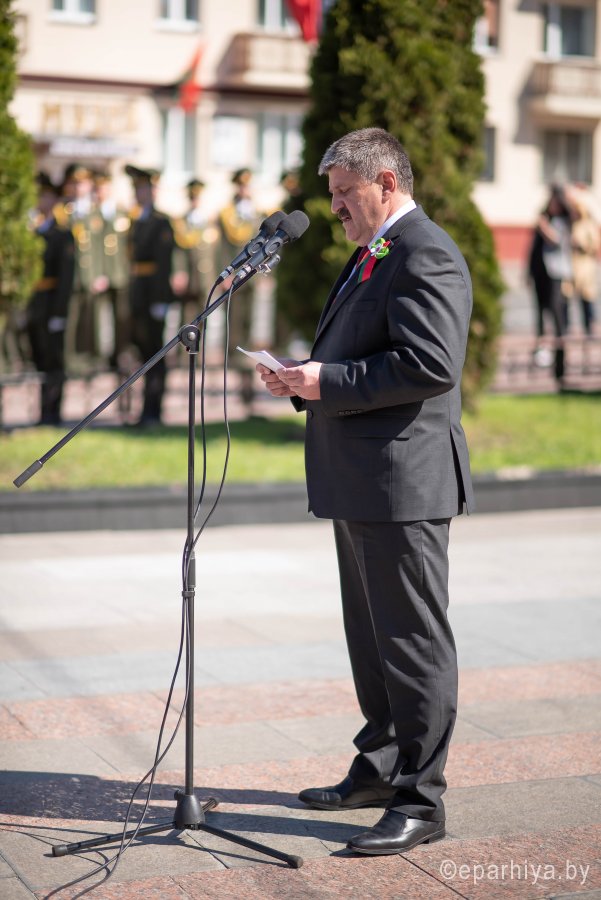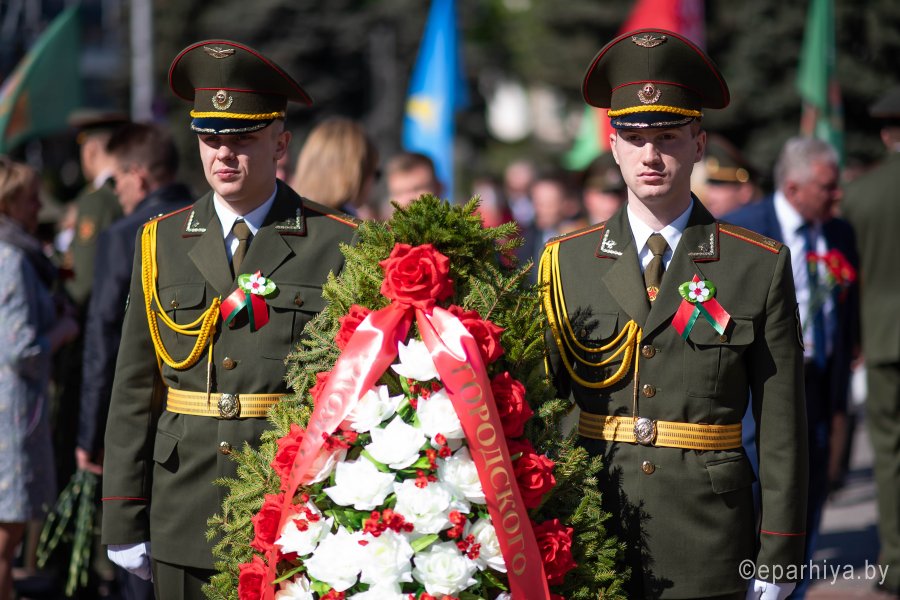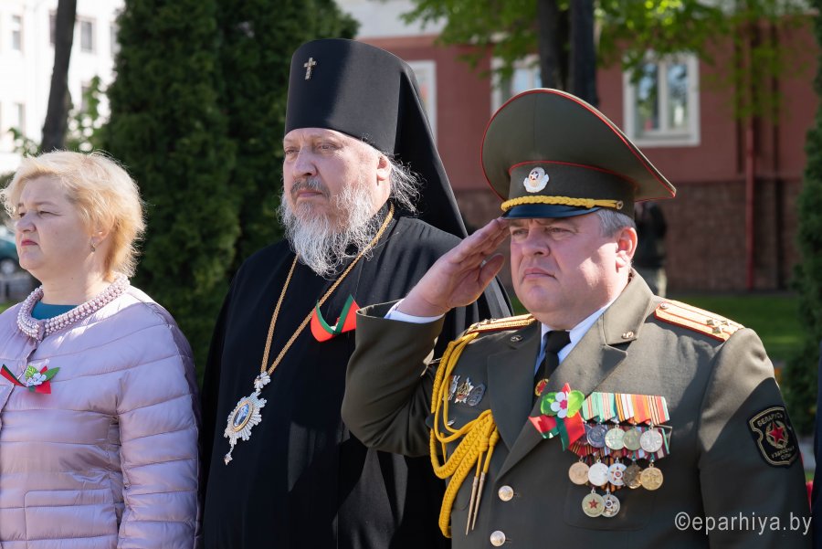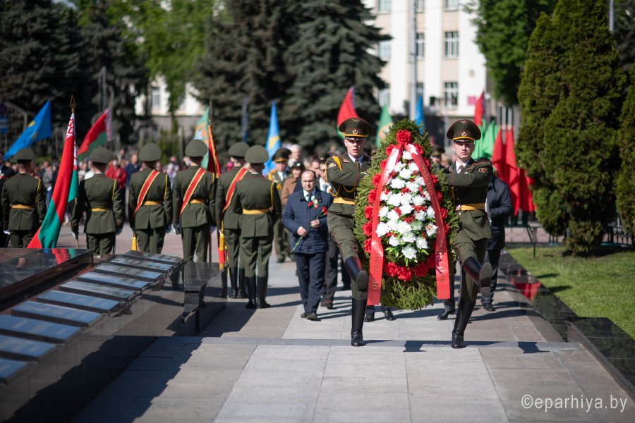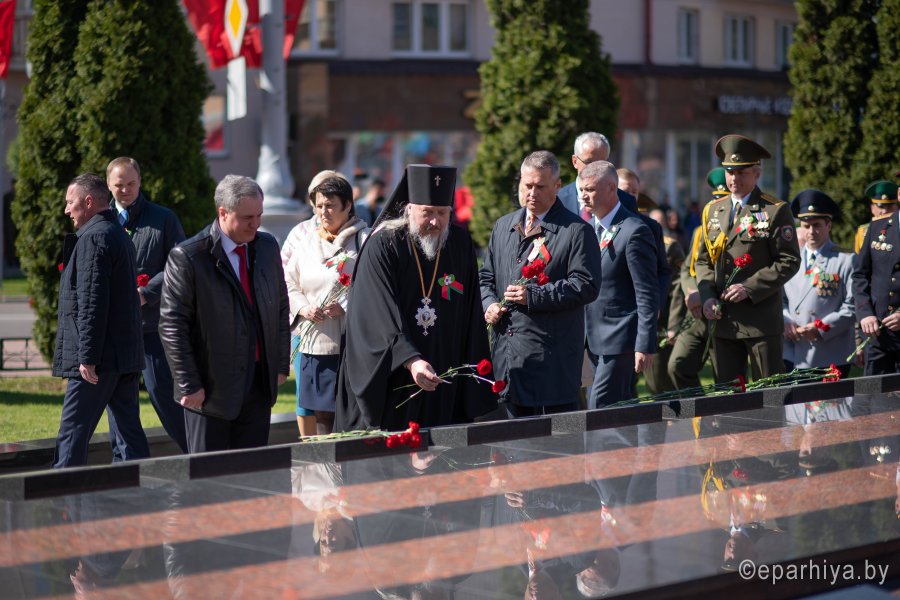 В день 75-летия Великой Победы нашего народа над немецко-фашистскими захватчиками 9 мая 2020г. Высокопреосвященнейший Стефан, архиепископ Гомельский и Жлобинский принял участие в торжественном возложении цветов у Вечного огня в память о всех героях, погибших в годы Великой отечественной войны. Митинг стал частью акции "Беларусь помнит. Помним каждого" и собрал на площади Труда руководство области, города, представителей трудовых коллективов, общественность, молодежь. Участники возложили цветы и венки к Вечному огню и братской могиле советских воинов и подпольщиков, почтили минутой молчания память героев, доблестно сражавшихся за свободу Родины. |