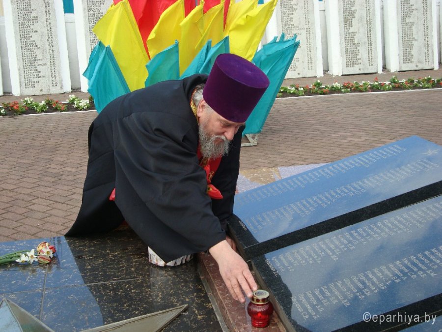 9 мая, в 75-ю годовщину Великой Победы, в приходе храма Преображения Господня в г. Ветке прошли богослужения, посвящённые знаменательной дате. После Божественной литургии, на которой возносились особые молитвы "о вождях и воинах, на поле брани жизнь свою положивших, от ран и глада скончавшихся, в пленении и горьких работах невинно умученных и убиенных», и благодарственного молебна за дарование Победы в Великой Отечественной войне, настоятель прихода протоиерей Михаил Борисёнок с церковнослужителями совершил литию возле памятника солдатам, освобождавшим Ветковскую землю. Затем, после минуты молчания, протоиерей Михаил установил у памятника горящую свечу. |