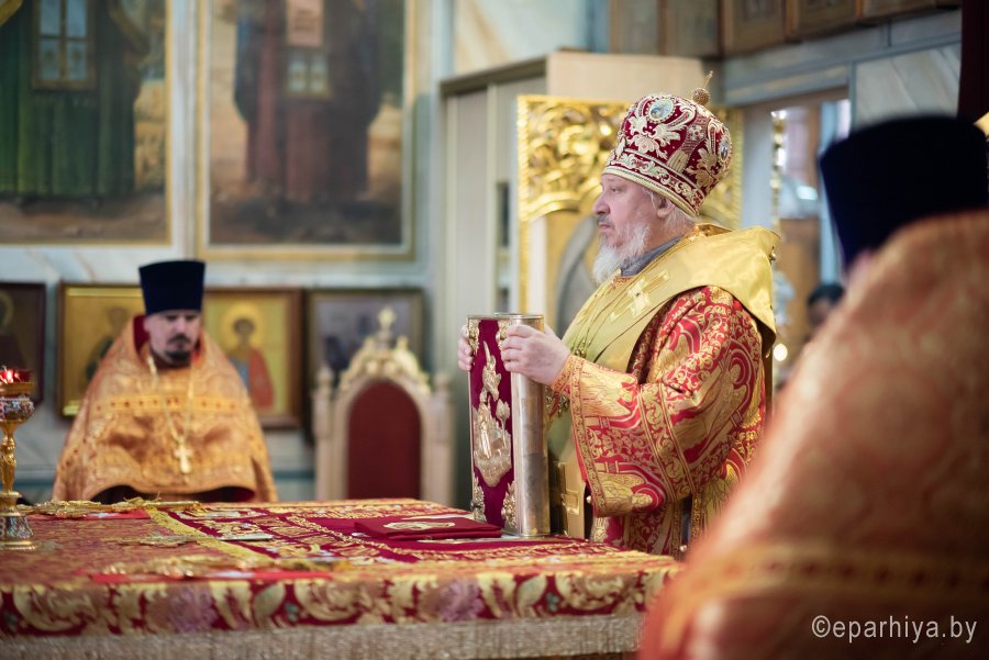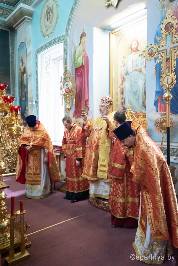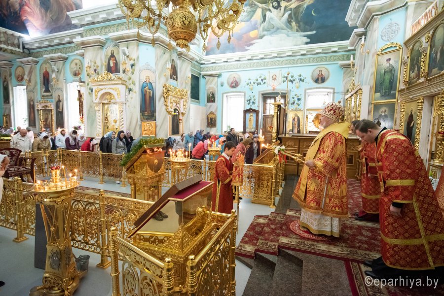 Божественную литургию в Неделю 5-ю по Пасхе, о самаряныне 17 мая 2020г. Высокопреосвященнейший Стефан, архиепископ Гомельский и Жлобинский, совершил в Петро-Павловском кафедральном соборе г.Гомеля в сослужении духовенства собора. После сугубой ектении владыка Стефан вознес молитву против зловредного поветрия. По окончании богослужения Высокопреосвященнейший Стефан поздравил прихожан и духовенство с праздником и обратился к верующим со словом назидания. Владыка поздравил причастников с принятием Святых Христовых Таин и преподал молящимся архипастырское благословение. |