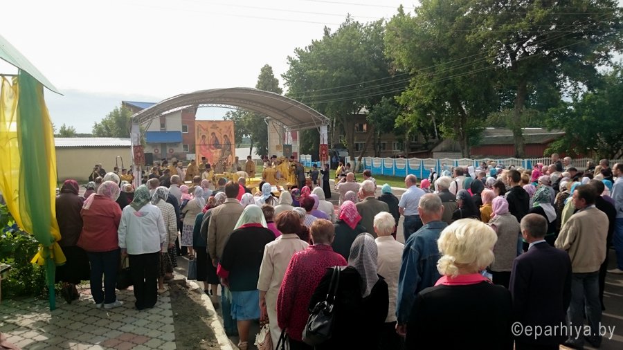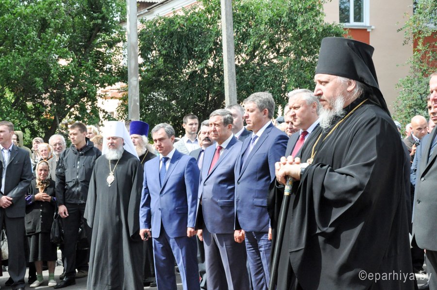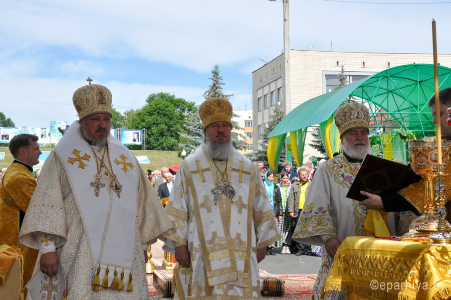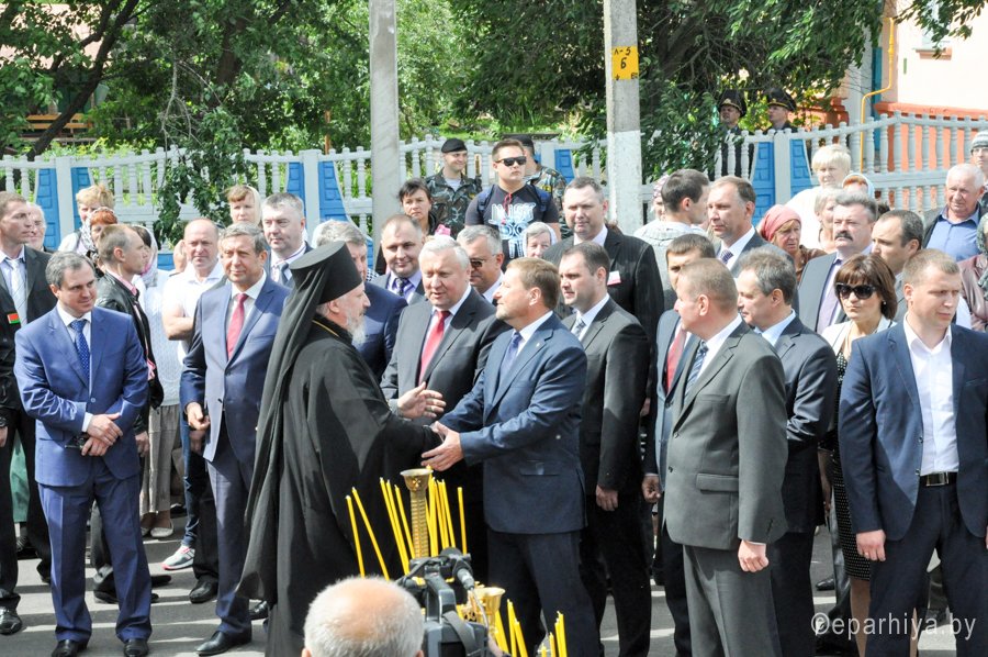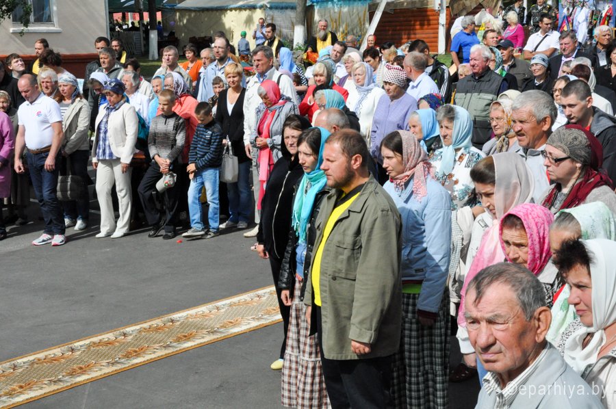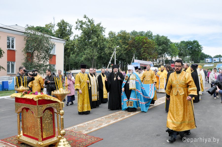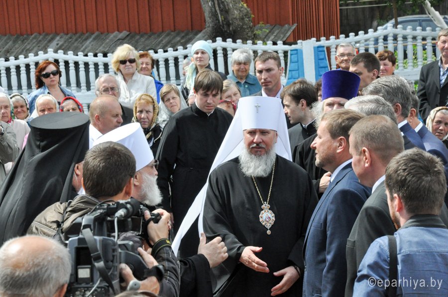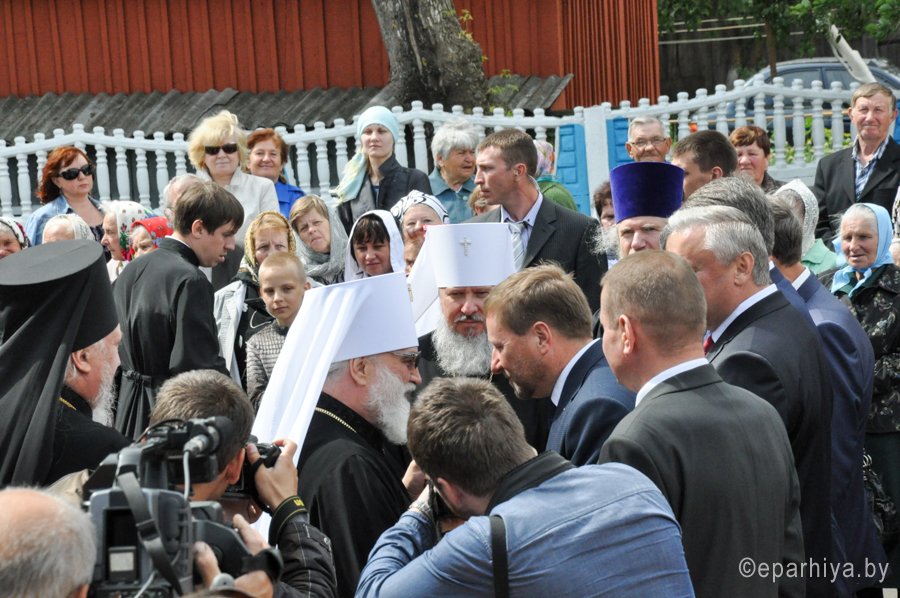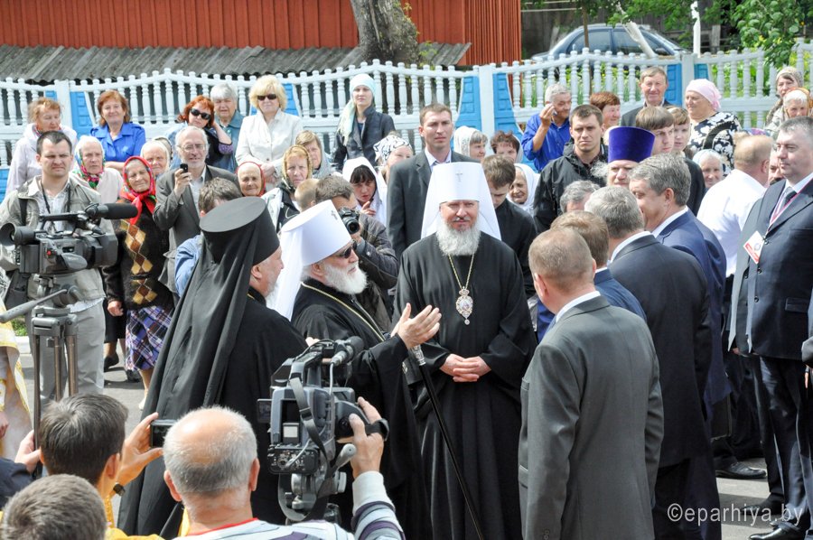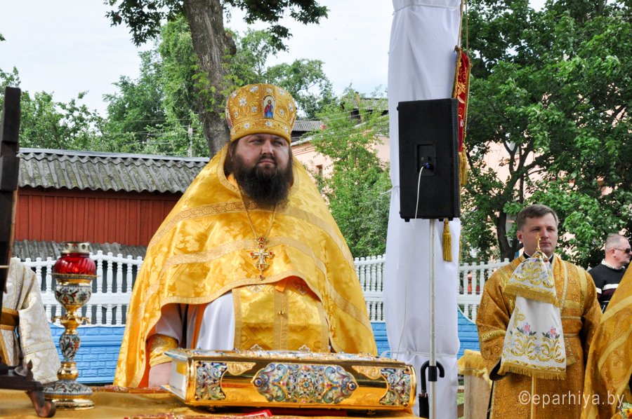 27 июня 2015г. в центре г/п Лоев под переливчатый звон колоколов передвижной звонницы Спасо-Преображенского храма г.Гомеля духовенство и молящиеся встретили своего Архипастыря — Высокопреосвященнейшего Павла, митрополита Минского и Заславского, Патриаршего Экзарха всея Беларуси. Божественной литургией начались торжества по случаю Дня единения славян и великой даты — 70-летия Победы в Великой Отечественной войне. Богослужение совершили Высокопреосвященнейший Павел митрополит Минский и Заславский, Патриарший Экзарх всея Беларуси, митрополит Брянский и Севский Александр, архиепископ Черниговский и Новгород-Северский Амвросий, епископ Гомельский и Жлобинский Стефан, епископ Туровский и Мозырский Леонид в сослужении духовенства братских народов. На богослужении присутствовали:: председатель Гомельского областного исполнительного комитета Владимир Андреевич Дворник; и.о. губернатора Брянской области Александр Васильевич Богомаз; советник председателя Черниговской областной государственной администрации Константин Викторович Иванов; председатель Лоевского районного исполнительного комитета Сергей Анатольевич Ткачук, руководители промышленной и сельско-хозяйственной отраслей. За богослужением Патриарший Экзарх всея Беларуси вознес молитву о мире на Украине. Проповедь перед Причастием произнес настоятель храма в честь святого мученика Иоанна Воина города Жлобина иеромонах Кронид (Печевистый). Богослужебные песнопения исполнил хор прихода храма Иконы Божией Матери "Иверская" г.Гомеля под управлением Лии Сычевой. По отпусте Божественной литургии Патриарший Экзарх обратился ко всем собравшимся со словом назидания, в котором подчеркнул ценность братского единства. «Единство — это особый дар Божий. В единении мы сильны и крепки. В единении нашем будет ниспосылаться благословение Божие людям, и люди будут жить в мире и благополучии», — сказал митрополит Павел. Владыка Экзарх выразил сердечную благодарность представителям государственной власти, архиереям, духовенству и благочестивым мирянам. Митрополит Павел поздравил причастников с принятием Святых Христовых Таин и преподал всем архипастырское благословение. Верующим были розданы иконки Святой Троицы с благословением Патриаршего Экзарха. После торжественного богослужения на главной площади Лоева состоялся праздничный концерт. Празднование Дня единения славян - это одно из крупнейших международных мероприятий, которое начало свою историю в 1969 году и проходило как встреча делегаций приграничных областей - Гомельской, Брянской и Черниговской. В августе 1975 года, в год 30-летия Победы в Великой Отечественной войне 1941-1945 годов, на месте пересечения границ Беларуси, Украины и России был воздвигнут Монумент дружбы «Три сестры». В 2001 году братский фестиваль почтил своим присутствием Святейший Патриарх Московский и всея Руси Алексий II, в 2004 – президенты трёх стран. Владимир Дворник, обращаясь к присутствующим отметил: «В год празднования 70-летия Победы над немецко-фашистских захватчиков местом проведения торжеств был выбран г.п. Лоев не случайно. Именно здесь на берегах Днепра осенью 1943 года сошлись в боях 4 миллиона солдат и офицеров. Более 10 тысяч бойцов навсегда остались лежать в этой земле. Как вспоминают очевидцы тех событий: «Днепр был кирпично–красн