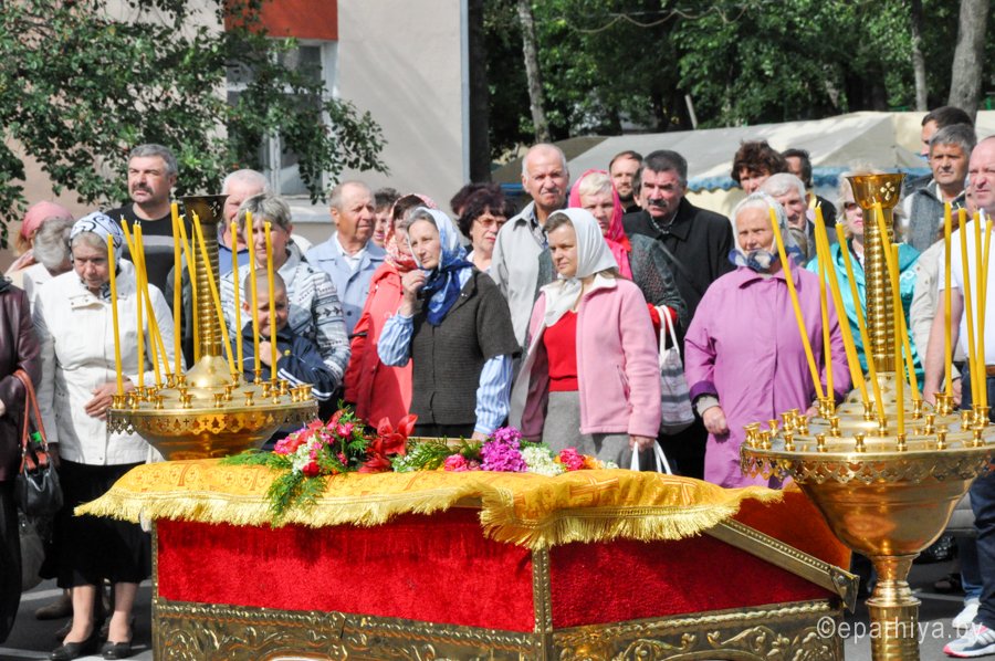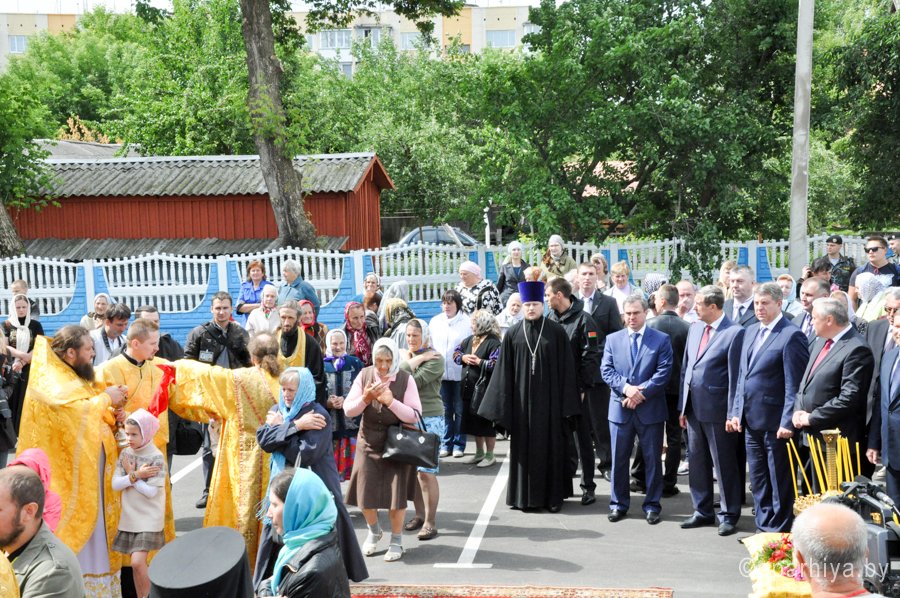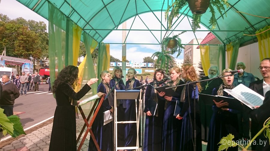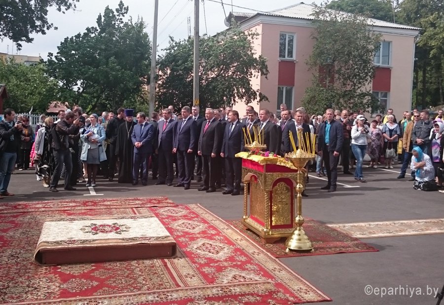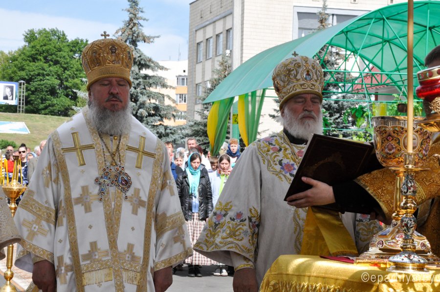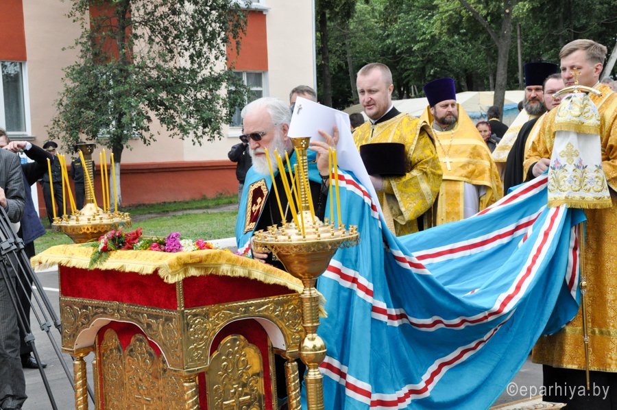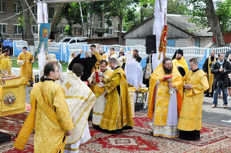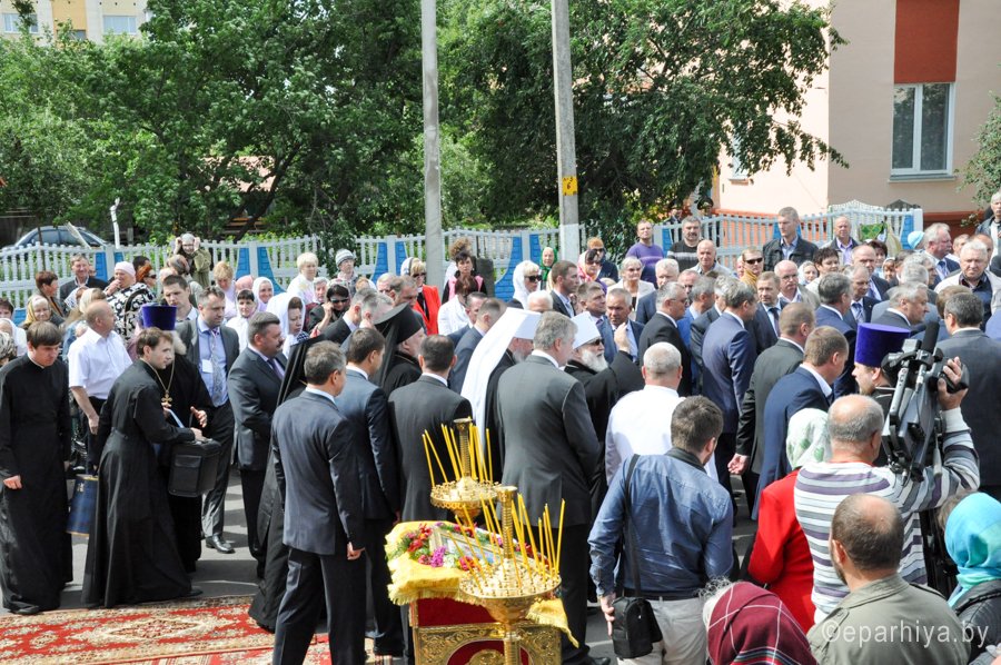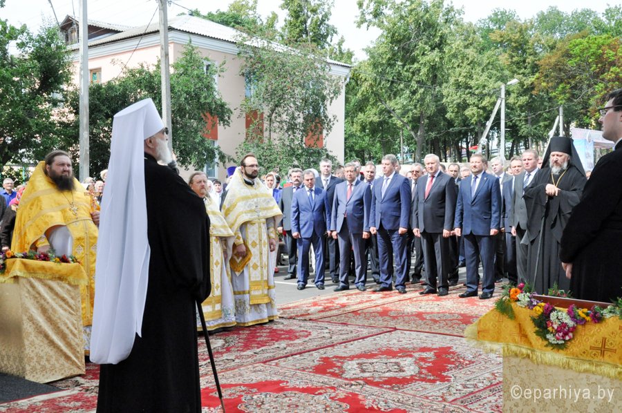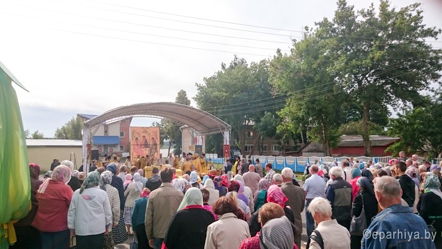 27 июня 2015г. в центре г/п Лоев под переливчатый звон колоколов передвижной звонницы Спасо-Преображенского храма г.Гомеля духовенство и молящиеся встретили своего Архипастыря — Высокопреосвященнейшего Павла, митрополита Минского и Заславского, Патриаршего Экзарха всея Беларуси. Божественной литургией начались торжества по случаю Дня единения славян и великой даты — 70-летия Победы в Великой Отечественной войне. Богослужение совершили Высокопреосвященнейший Павел митрополит Минский и Заславский, Патриарший Экзарх всея Беларуси, митрополит Брянский и Севский Александр, архиепископ Черниговский и Новгород-Северский Амвросий, епископ Гомельский и Жлобинский Стефан, епископ Туровский и Мозырский Леонид в сослужении духовенства братских народов. На богослужении присутствовали:: председатель Гомельского областного исполнительного комитета Владимир Андреевич Дворник; и.о. губернатора Брянской области Александр Васильевич Богомаз; советник председателя Черниговской областной государственной администрации Константин Викторович Иванов; председатель Лоевского районного исполнительного комитета Сергей Анатольевич Ткачук, руководители промышленной и сельско-хозяйственной отраслей. За богослужением Патриарший Экзарх всея Беларуси вознес молитву о мире на Украине. Проповедь перед Причастием произнес настоятель храма в честь святого мученика Иоанна Воина города Жлобина иеромонах Кронид (Печевистый). Богослужебные песнопения исполнил хор прихода храма Иконы Божией Матери "Иверская" г.Гомеля под управлением Лии Сычевой. По отпусте Божественной литургии Патриарший Экзарх обратился ко всем собравшимся со словом назидания, в котором подчеркнул ценность братского единства. «Единство — это особый дар Божий. В единении мы сильны и крепки. В единении нашем будет ниспосылаться благословение Божие людям, и люди будут жить в мире и благополучии», — сказал митрополит Павел. Владыка Экзарх выразил сердечную благодарность представителям государственной власти, архиереям, духовенству и благочестивым мирянам. Митрополит Павел поздравил причастников с принятием Святых Христовых Таин и преподал всем архипастырское благословение. Верующим были розданы иконки Святой Троицы с благословением Патриаршего Экзарха. После торжественного богослужения на главной площади Лоева состоялся праздничный концерт. Празднование Дня единения славян - это одно из крупнейших международных мероприятий, которое начало свою историю в 1969 году и проходило как встреча делегаций приграничных областей - Гомельской, Брянской и Черниговской. В августе 1975 года, в год 30-летия Победы в Великой Отечественной войне 1941-1945 годов, на месте пересечения границ Беларуси, Украины и России был воздвигнут Монумент дружбы «Три сестры». В 2001 году братский фестиваль почтил своим присутствием Святейший Патриарх Московский и всея Руси Алексий II, в 2004 – президенты трёх стран. Владимир Дворник, обращаясь к присутствующим отметил: «В год празднования 70-летия Победы над немецко-фашистских захватчиков местом проведения торжеств был выбран г.п. Лоев не случайно. Именно здесь на берегах Днепра осенью 1943 года сошлись в боях 4 миллиона солдат и офицеров. Более 10 тысяч бойцов навсегда остались лежать в этой земле. Как вспоминают очевидцы тех событий: «Днепр был кирпично–красн