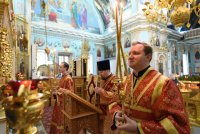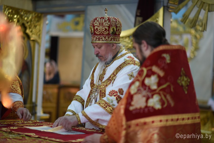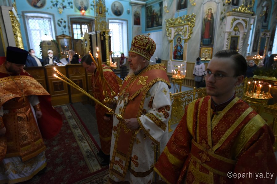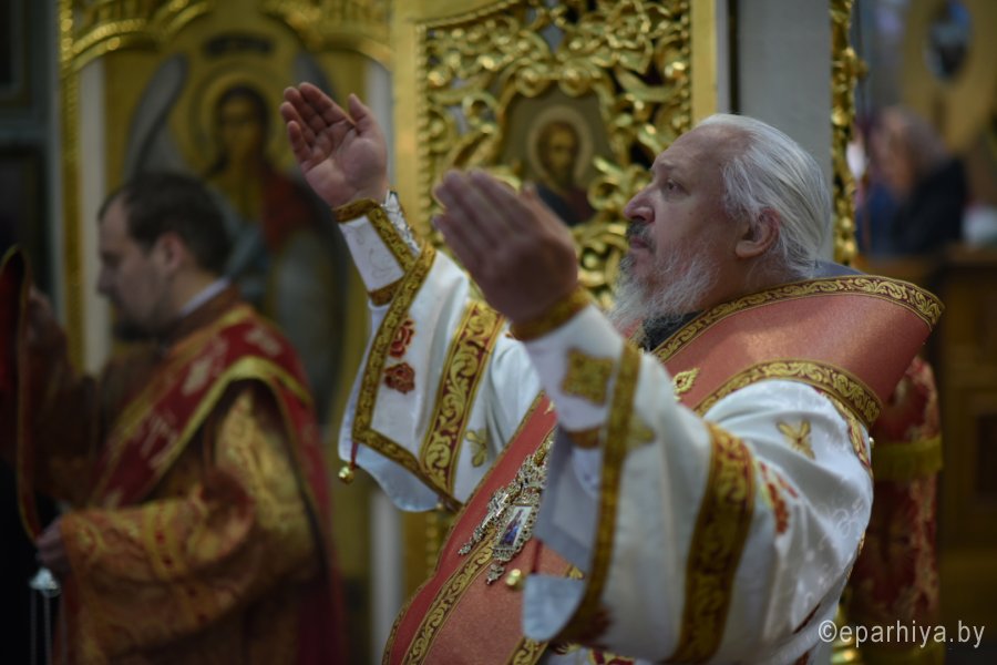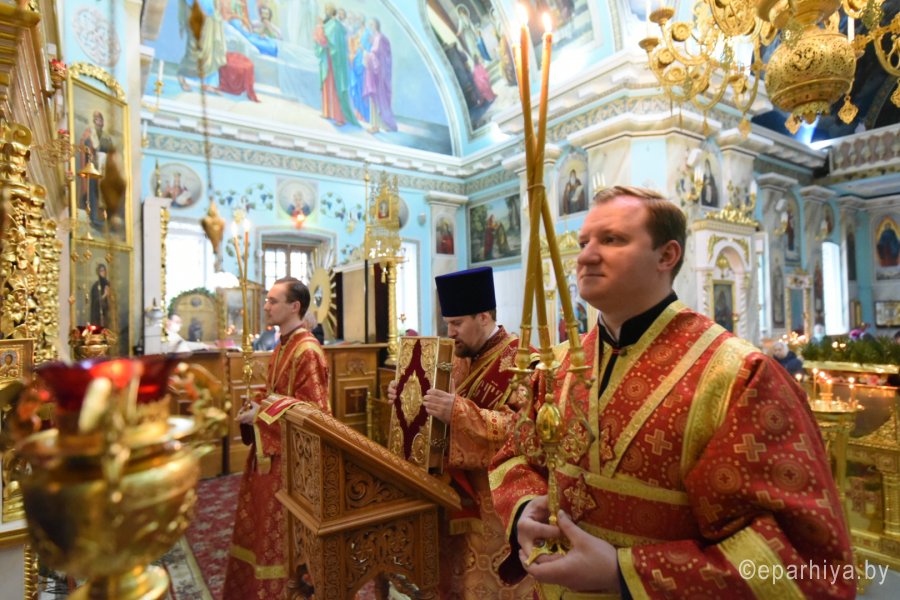 Божественную литургию в отдание праздника Пасхи 27 мая 2020г. Высокопреосвященнейший Стефан, архиепископ Гомельский и Жлобинский совершил в Петро-Павловском кафедральном соборе г.Гомеля в сослужении духовенства собора. После сугубой ектении владыка Стефан вознес молитву против зловредного поветрия. По окончании богослужения Владыка поздравил причастников с принятием Святых Христовых Таин и обратился к молящимся со словами архипастырского назидания. |