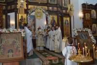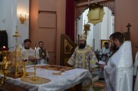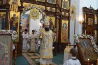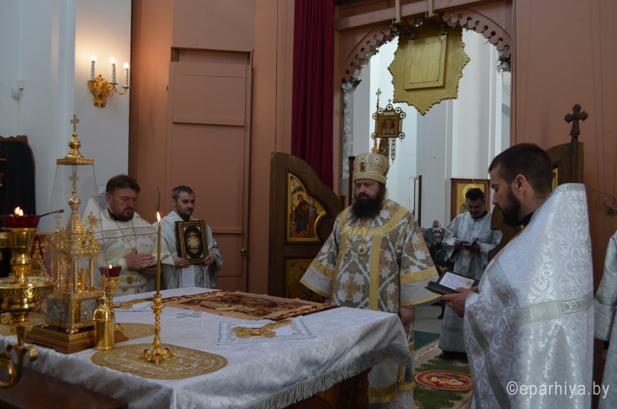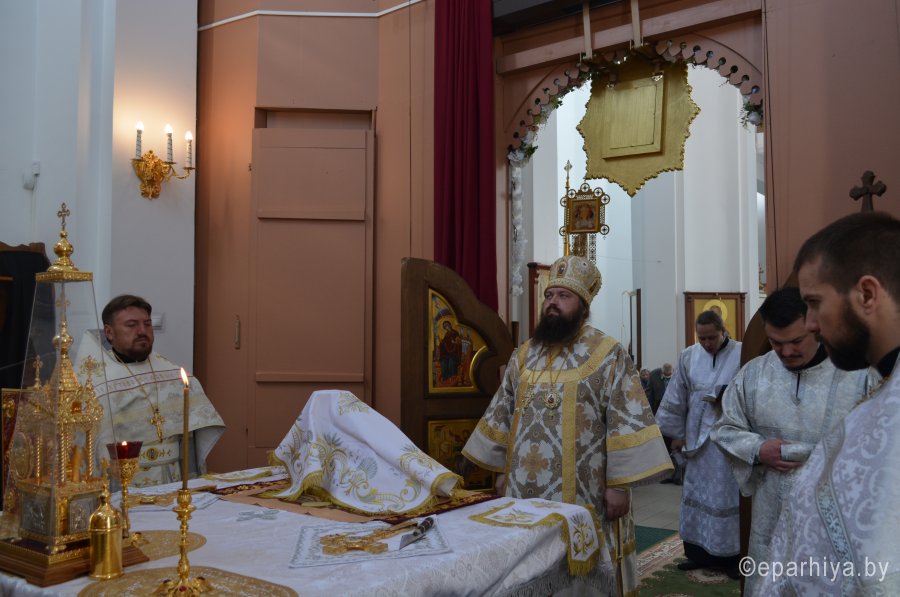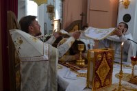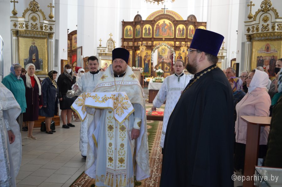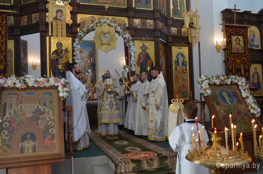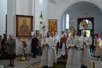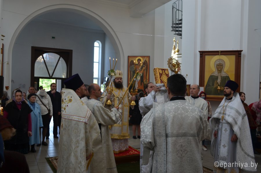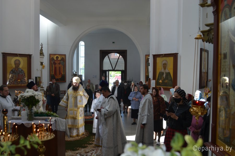 28 мая 2020 г., в праздник Вознесения Господня Божественную литургию в храме Преображения Господня в г. Светлогорске возглавил Преосвященнейший Амвросий, епископ Светлогорский, викарий Гомельской епархии. Его Преосвященству сослужили: благочинный Светлогорского округа протоиерей Александр Кисель и духовенство храма. После сугубой ектении архипастырь вознес молитву против зловредного поветрия. По завершении богослужения владыка Амвросий сердечно поздравил всех с праздником, причастников с принятием Святых Христовых Таин и обратился к молящимся со словами архипастырским назидания. |
