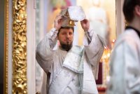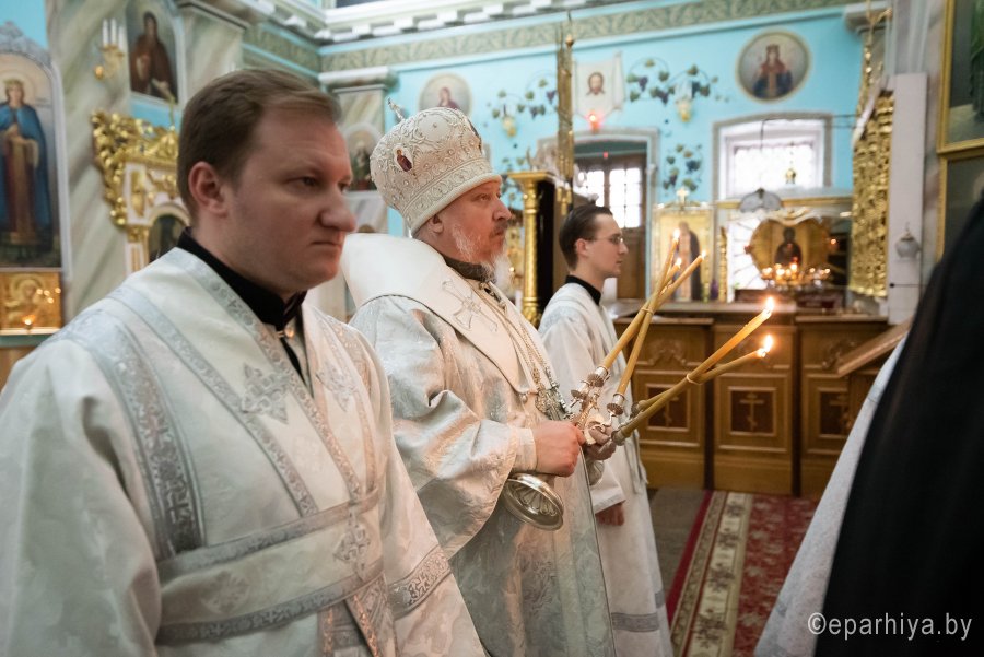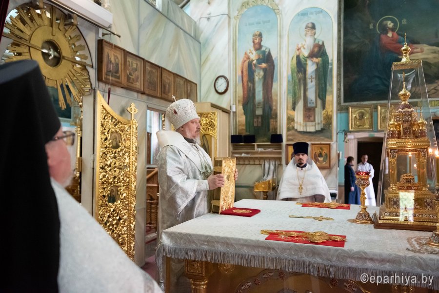 Божественную литургию во вторник 7-й седмицы по Пасхе 2 июня 2020г. Высокопреосвященнейший Стефан, архиепископ Гомельский и Жлобинский совершил в Петро-Павловском кафедральном соборе г.Гомеля в сослужении духовенства собора. После сугубой ектении владыка Стефан вознес молитву против зловредного поветрия. По окончании богослужения Владыка поздравил причастников с принятием Святых Христовых Таин и обратился к молящимся со словами архипастырского назидания. |