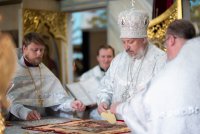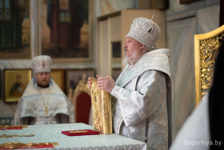 Божественную литургию в четверг 7-й седмицы по Пасхе 4 июня 2020г., в день памяти святых отцов II Вселенского собора Высокопреосвященнейший Стефан, архиепископ Гомельский и Жлобинский совершил в Петро-Павловском кафедральном соборе г.Гомеля. Высокопреосвященному сослужили: секретарь Гомельской епархии протоиерей Георгий Алампиев и духовенство собора. По сугубой ектении владыка Стефан вознес молитву, чтомую во время распространения вредоносного поветрия. По окончании богослужения Владыка поздравил причастников с принятием Святых Христовых Таин и обратился к молящимся со словами архипастырского назидания. |