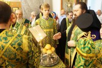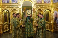 06 июня, в канун праздника Святой Пятидесятницы, епископ Светлогорский Амвросий, викарий Гомельской епархии, совершил всенощное бдение с благословением хлебов в храме святителя Николая Никольского мужского монастыря г. Гомеля. Его Преосвященству сослужили братия обители в священном сане |