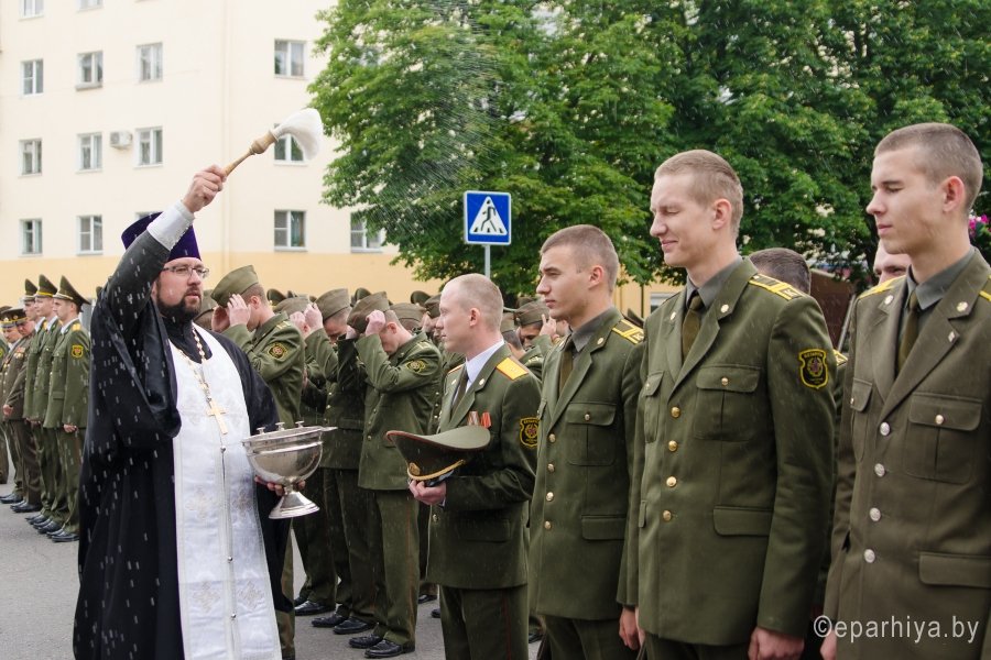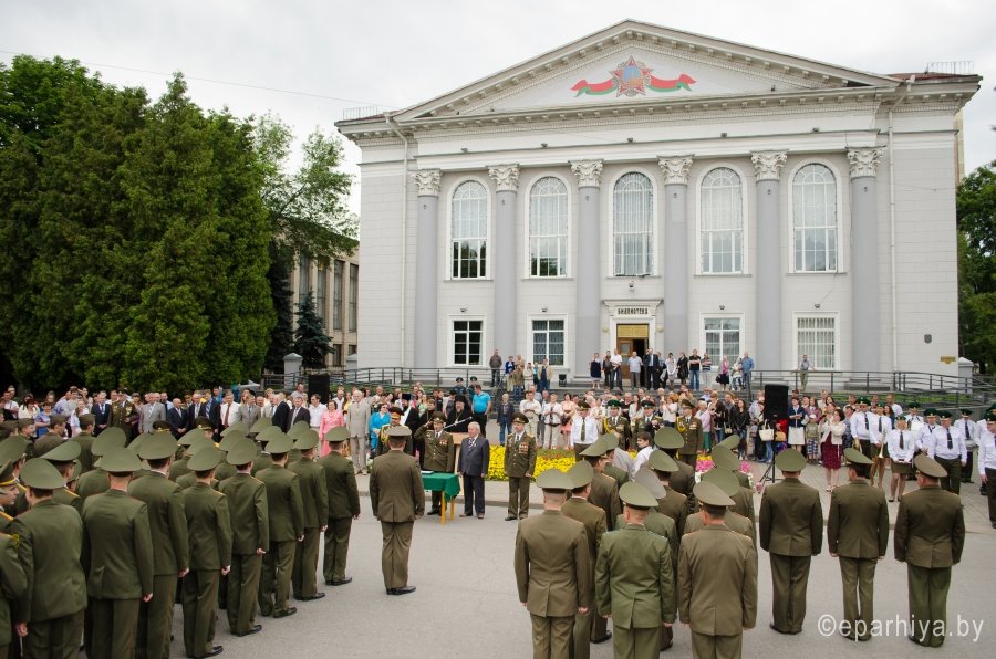 28 июня 2015 года Преосвященнейший Стефан в сопровождении секретаря Гомельской епархии протоиерея Георгия Алампиева и руководителя отдела по взаимодействию с Вооруженными Силами и правоохранительными органами Гомельской епархии протоиерея Игоря Ольшанова приняли участие в торжественном мероприятии по случаю выпуска офицеров военно-транспортного факультета Белорусского государственного университета транспорта. 30 молодым выпускникам факультета приказом Министра обороны было присвоено воинское звание «лейтенант» и выдан диплом общегосударственного образца о получении высшего образования с присвоением квалификации «Специалист по управлению. Инженер». Военно-транспортный факультет был образован 11 июня 2003 года и осуществляет подготовку кадровых офицеров в интересах Департамента транспортного обеспечения Республики Беларусь. Поэтому с напутственным словом традиционно выступил начальник Департамента транспортного обеспечения Министерства обороны генерал-майор Новиков Сергей Игнатович: «… Теперь вы уже офицеры, и ваша задача – передать все полученные знания, весь наработанный опыт солдатам, быть грамотными и добросовестными руководителями. В добрый путь, товарищи лейтенанты!». Также выступили ректор университета профессор В.И. Сенько, заместитель начальника отдела военной контрразведки по 19-й Пограничной группе подполковник А.В. Воеводкин и другие почетные гости. Несомненно, самой ожидаемой частью было благословение Преосвященнейшего Стефана. Накануне, 26 июня, Владыка освятил погоны. А сегодня теперь уже молодых лейтенантов Преосвященный благословляет на верную службу своей Родине: «…Служите честно и достойно, пусть ничто не заставит вас запятнать честь офицера, всегда помните о своем долге перед Богом, своим Отечеством и народом. Храни вас Бог!». После чего протоиерей Игорь Ольшанов окропил выпускников и приглашенных гостей Святой водой. Заключительная часть торжественного, но в тоже время трогательного мероприятия, - прощание выпускников со Знаменем университета и торжественный марш личного состава военно-транспортного факультета. Хотелось бы закончить словами одной из матерей выпускников: «Кажется, только вчера эти мальчишки пришли на факультет, и вот они уже настоящие мужчины. Через месяц они разъедутся по нашей стране для прохождения дальнейшей службы. Мне не страшно отпускать моего сына, потому что я в него верю, я верю в наших сыновей, и я горжусь ими!». |